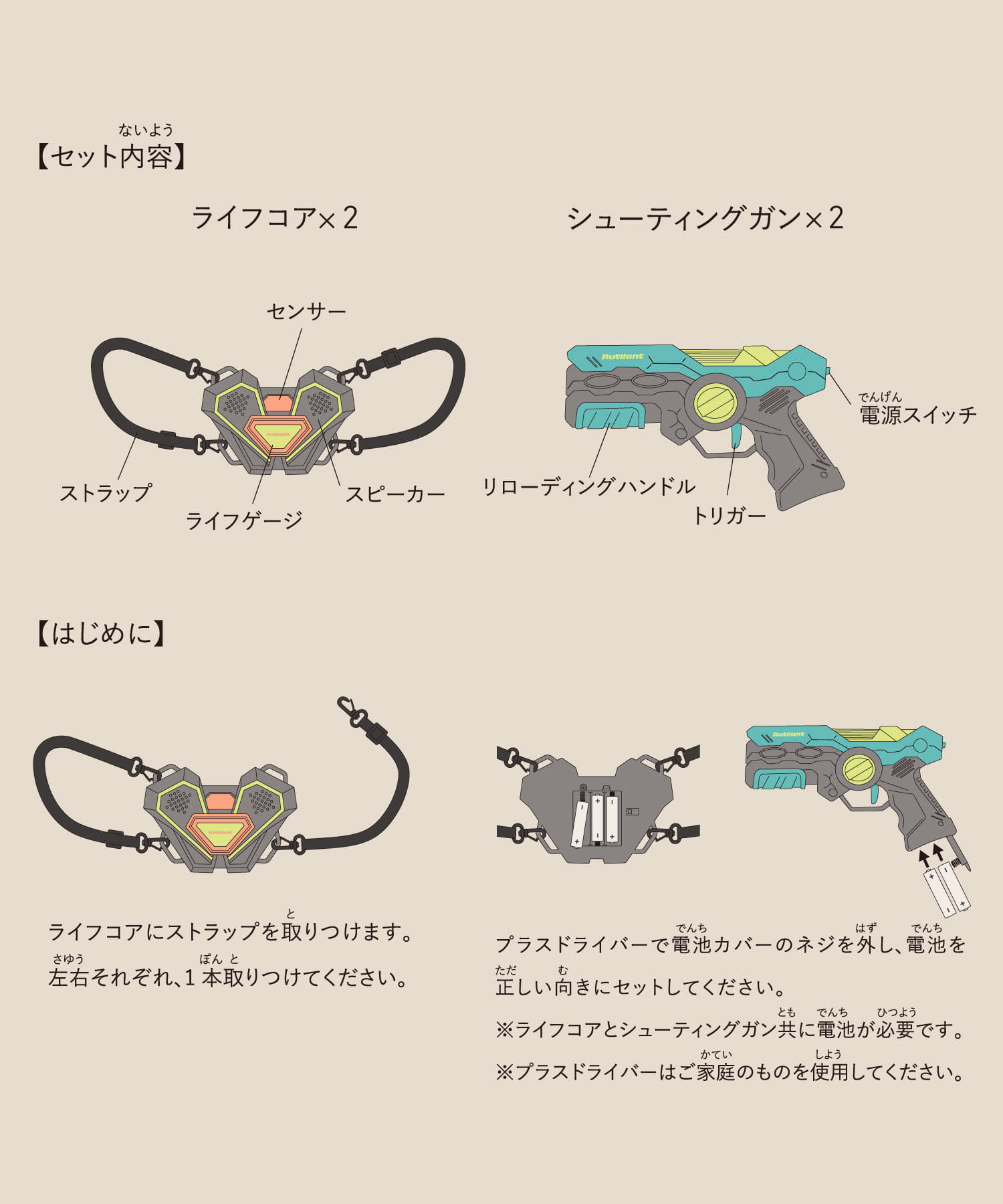 セット内容:ライフコア×2、ストラップ×2、シューティングガン×2