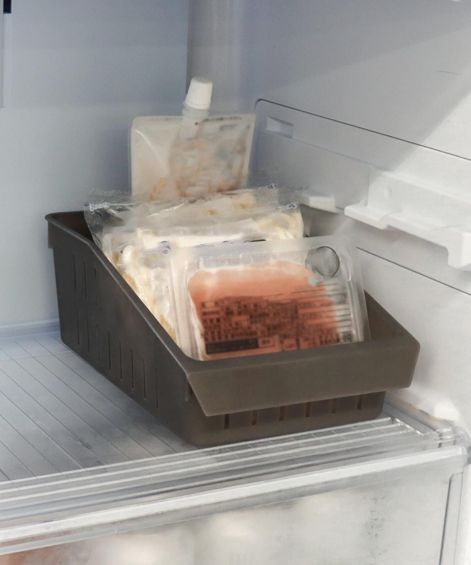 ●小袋調味料や、粉もの袋などの収納に便利な冷蔵庫用の収納トレイ。