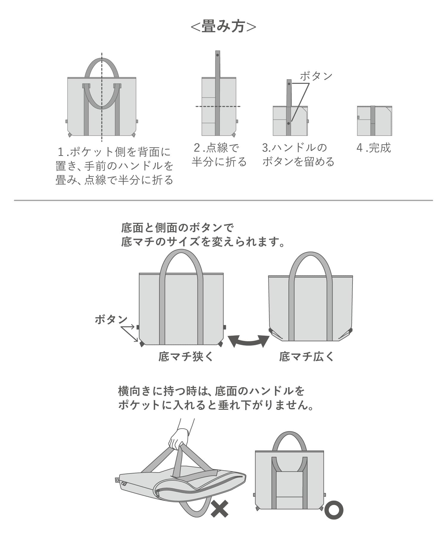 ●スナップボタンで底マチのサイズを変えられるので荷物の量によって使い分けができます♪