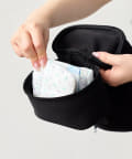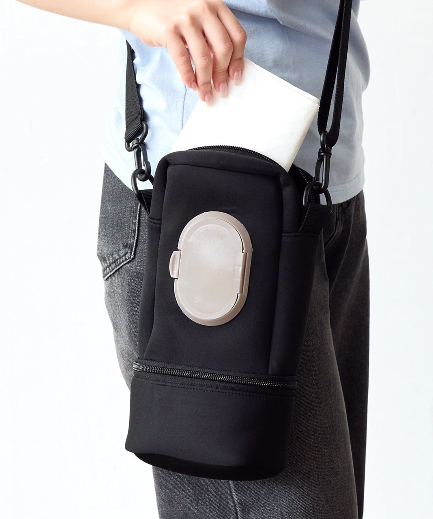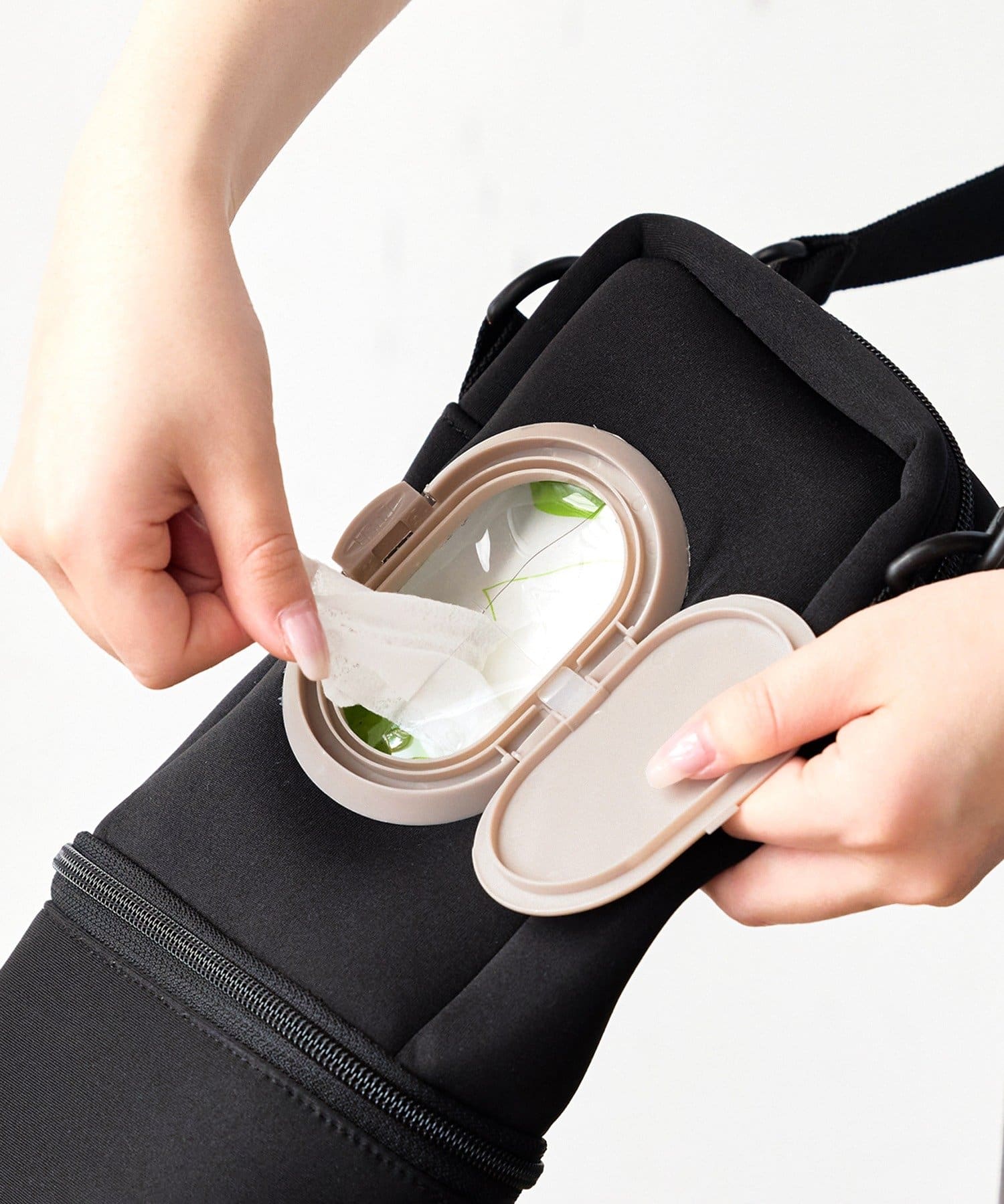 ●ウェットティッシュ、ポケットティッシュ、マナーロールがまとめて入れられて必要なアイテムを整理しながら持ち歩けます。