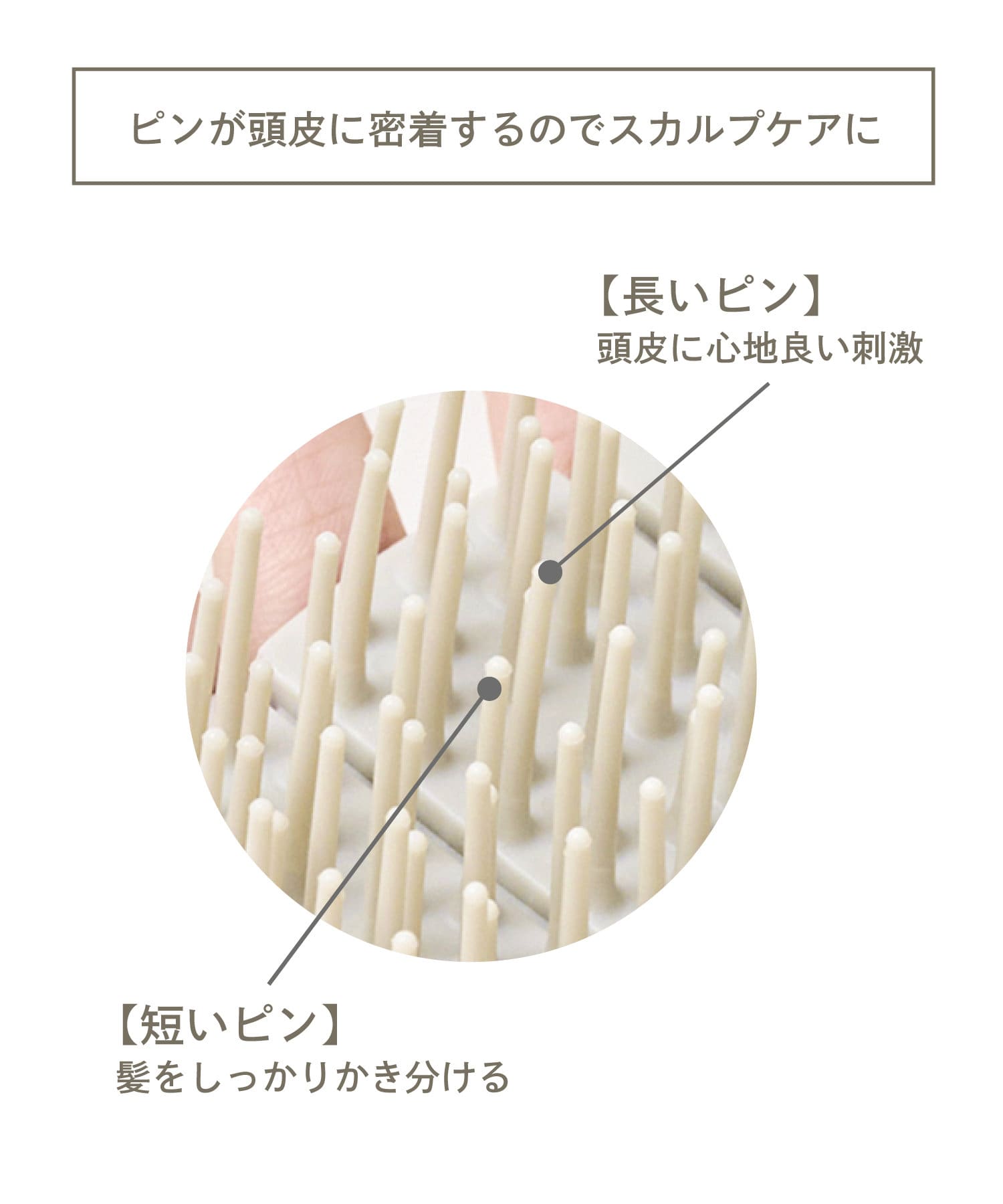●異なる長さのブラシが頭皮にしっかり密着し、マッサージ効果で頭皮をリフレッシュ。