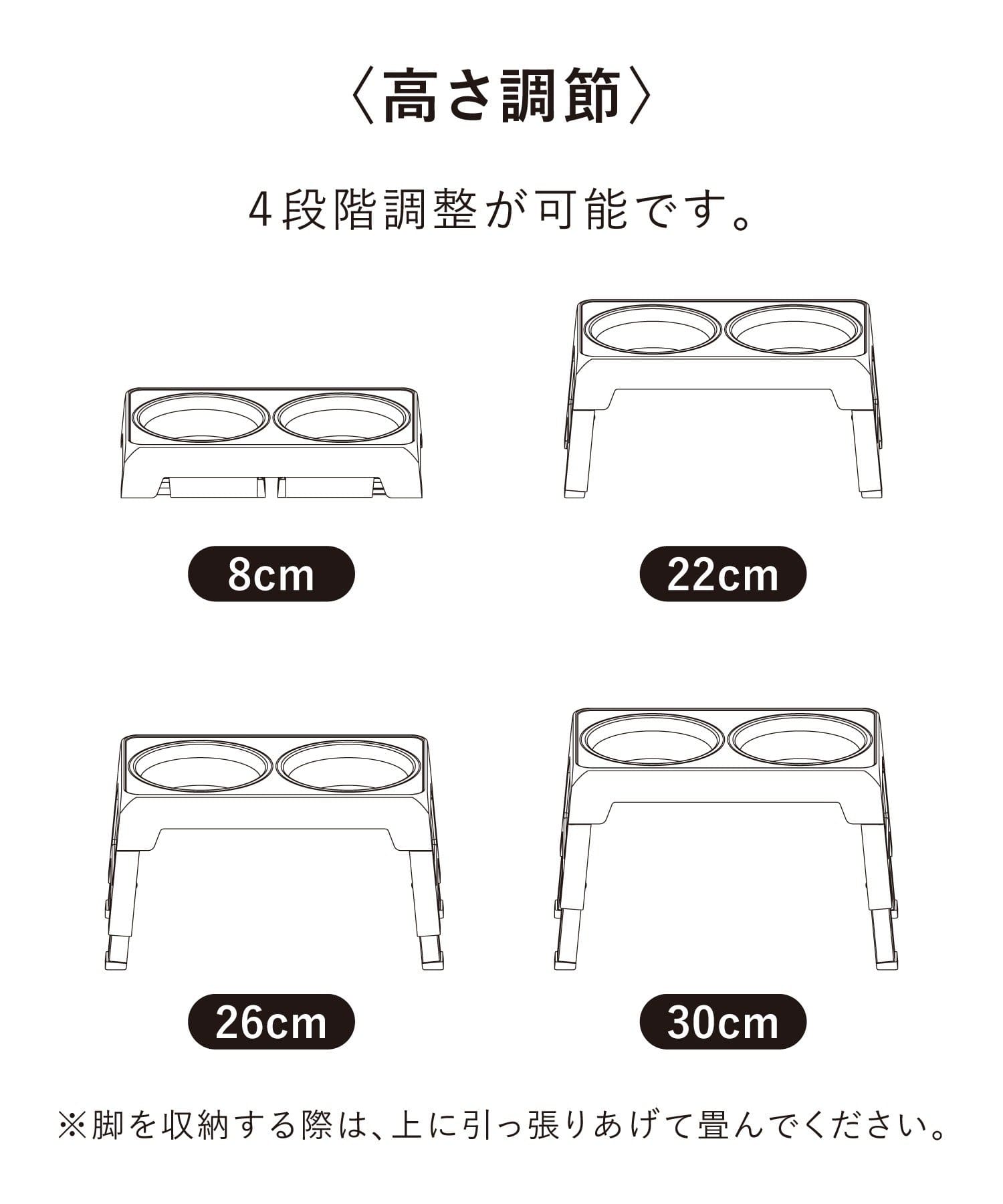 ●4段階の高さ調節ができて、ペットの身体に合わせてご使用いただけます。