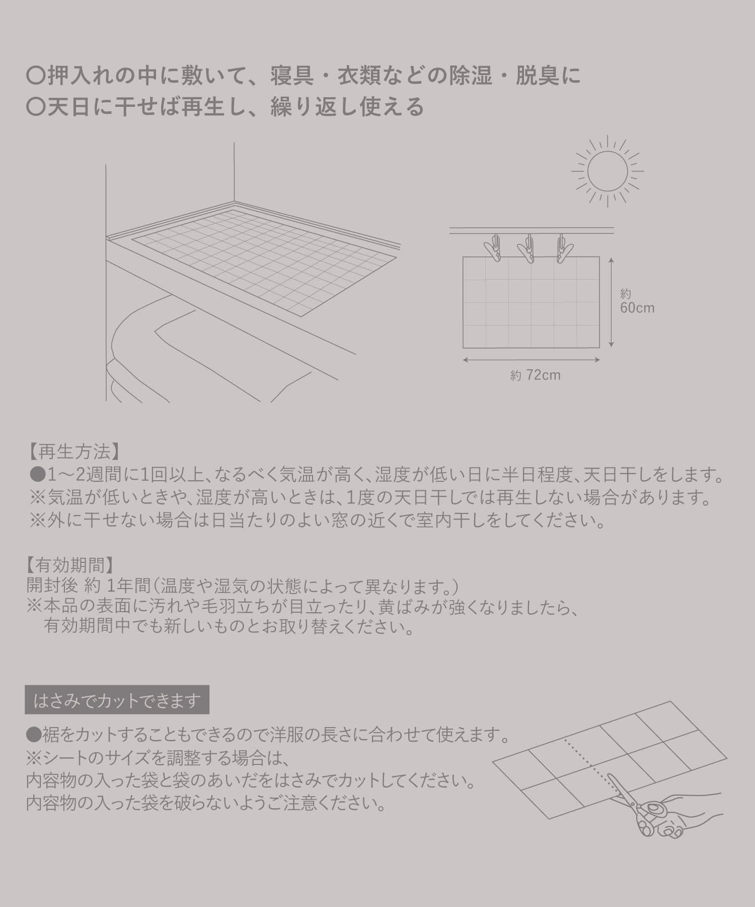 ●押し入れの中に敷いて、寝具や衣類の除湿・脱臭に!