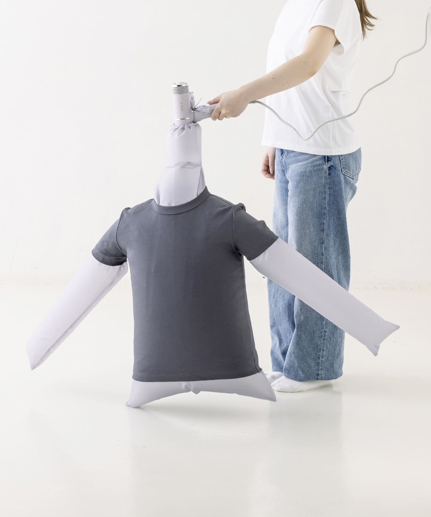 1.洗濯後の衣類の内側に本品を入れ、形を整えます。※袖のある衣類は必ず袖を通してください。