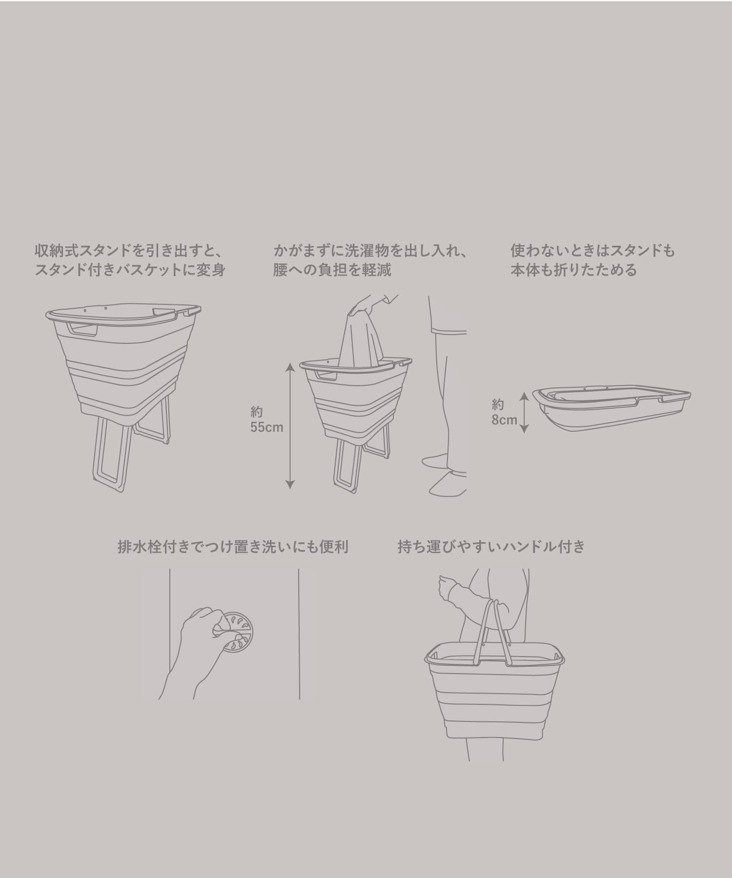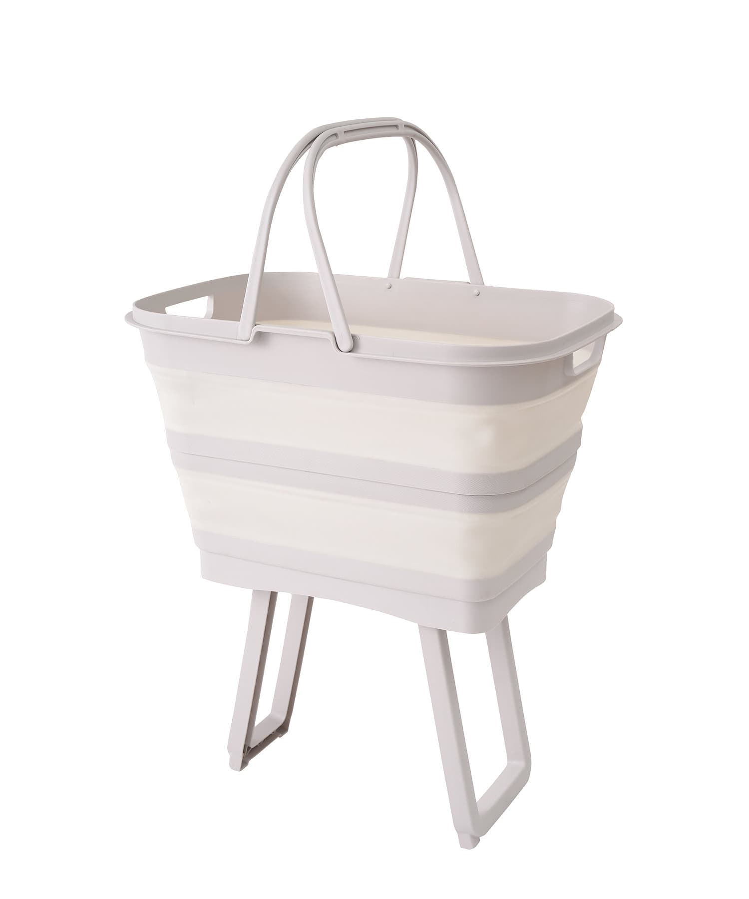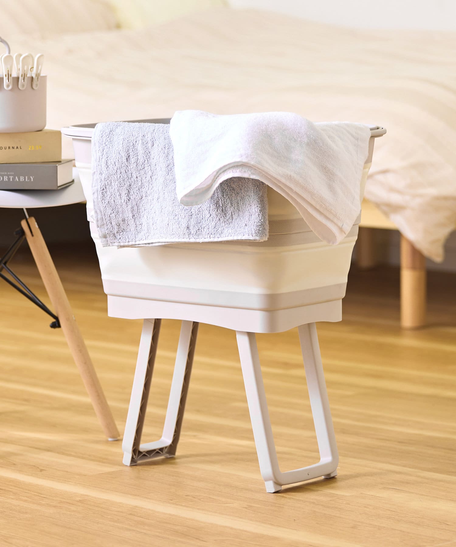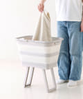●収納式スタンドを引き出すと、スタンド付きのランドリーバスケットに変身!