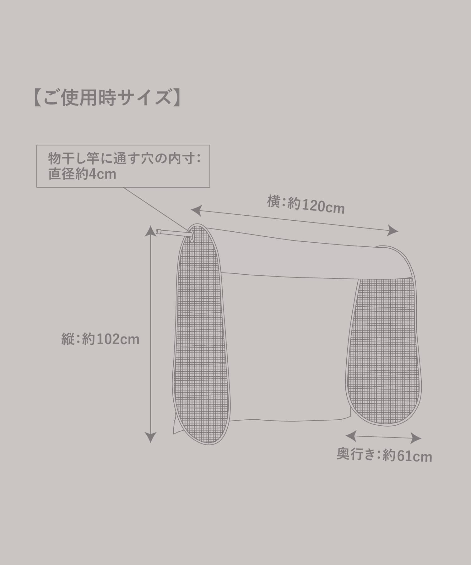 サイズ - 0 約縦102×横120×奥行き61cm(使用時) 物干し竿に通す穴の内寸:約直径4cm