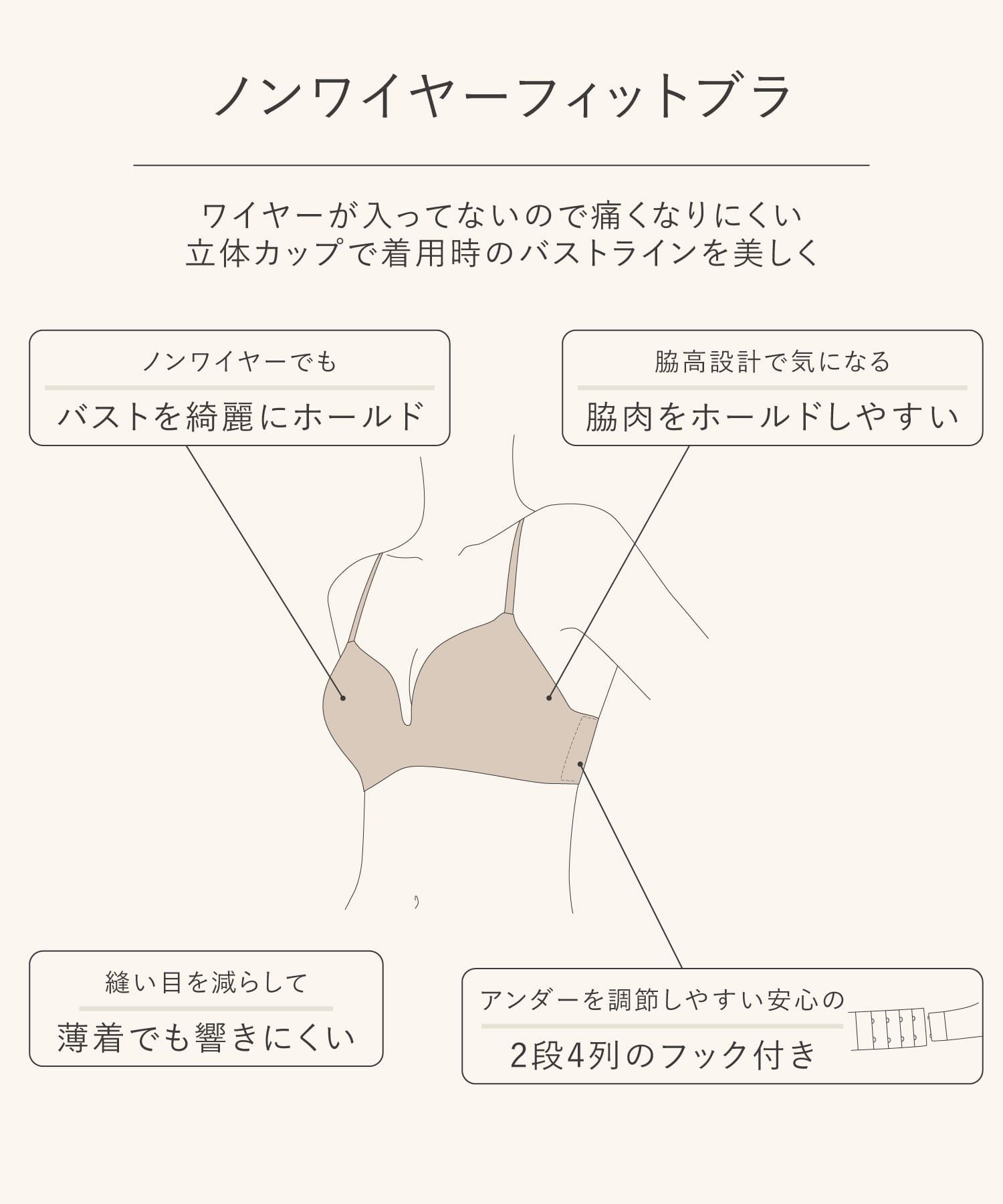 ●ノンワイヤーで痛くなりにくく、やさしい着け心地です。