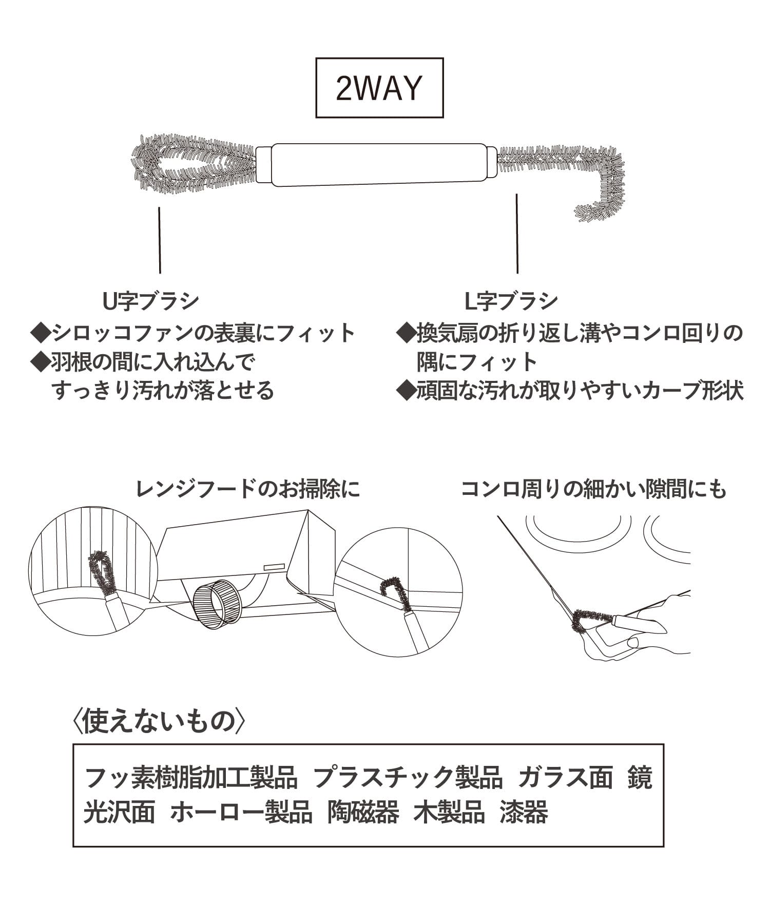 ●L字ブラシは、換気扇の折り返し溝やコンロ周りの細かな隙間のお掃除におすすめです。