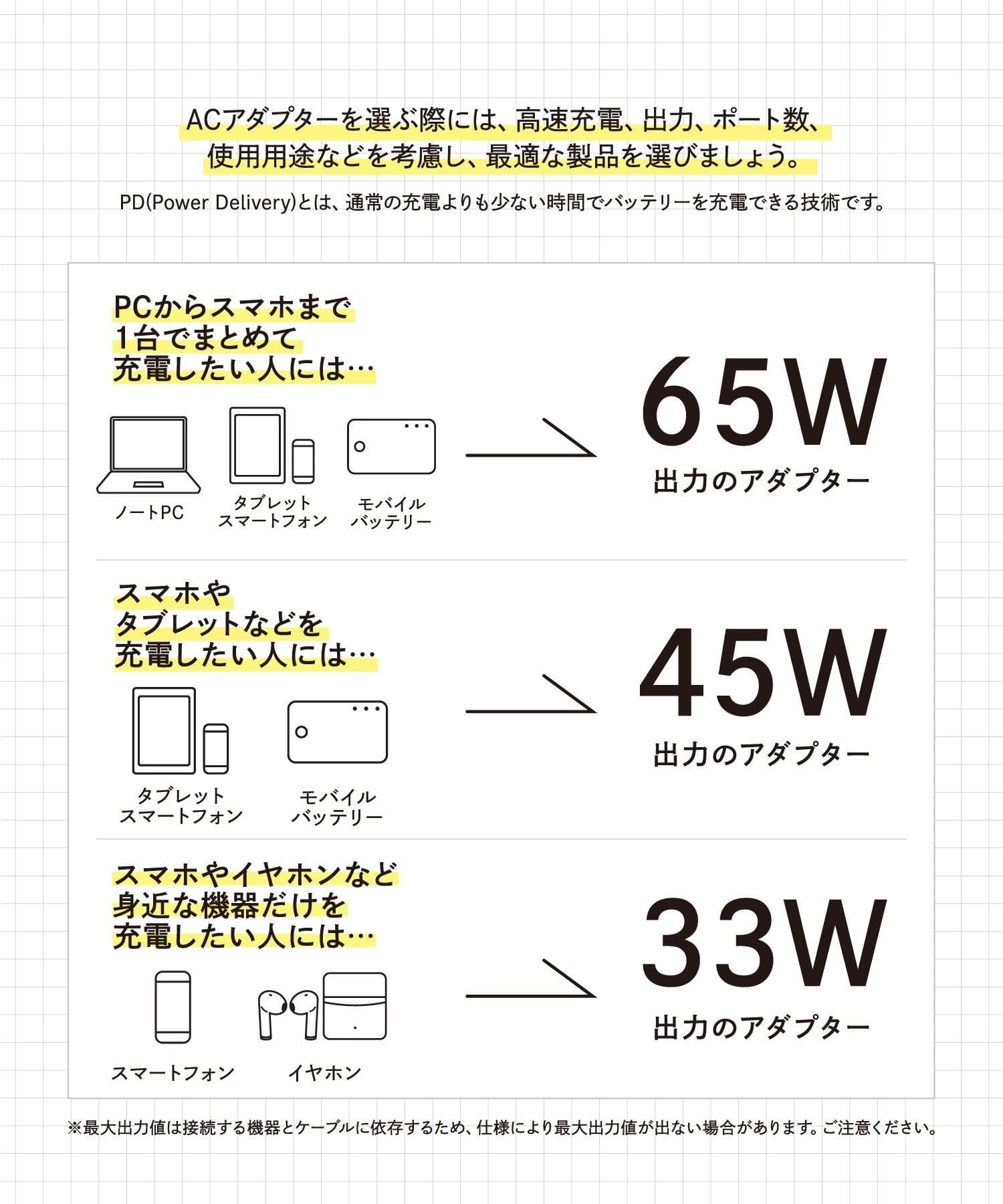※高速充電するためには33W以上対応のケーブルを合わせてご使用ください。