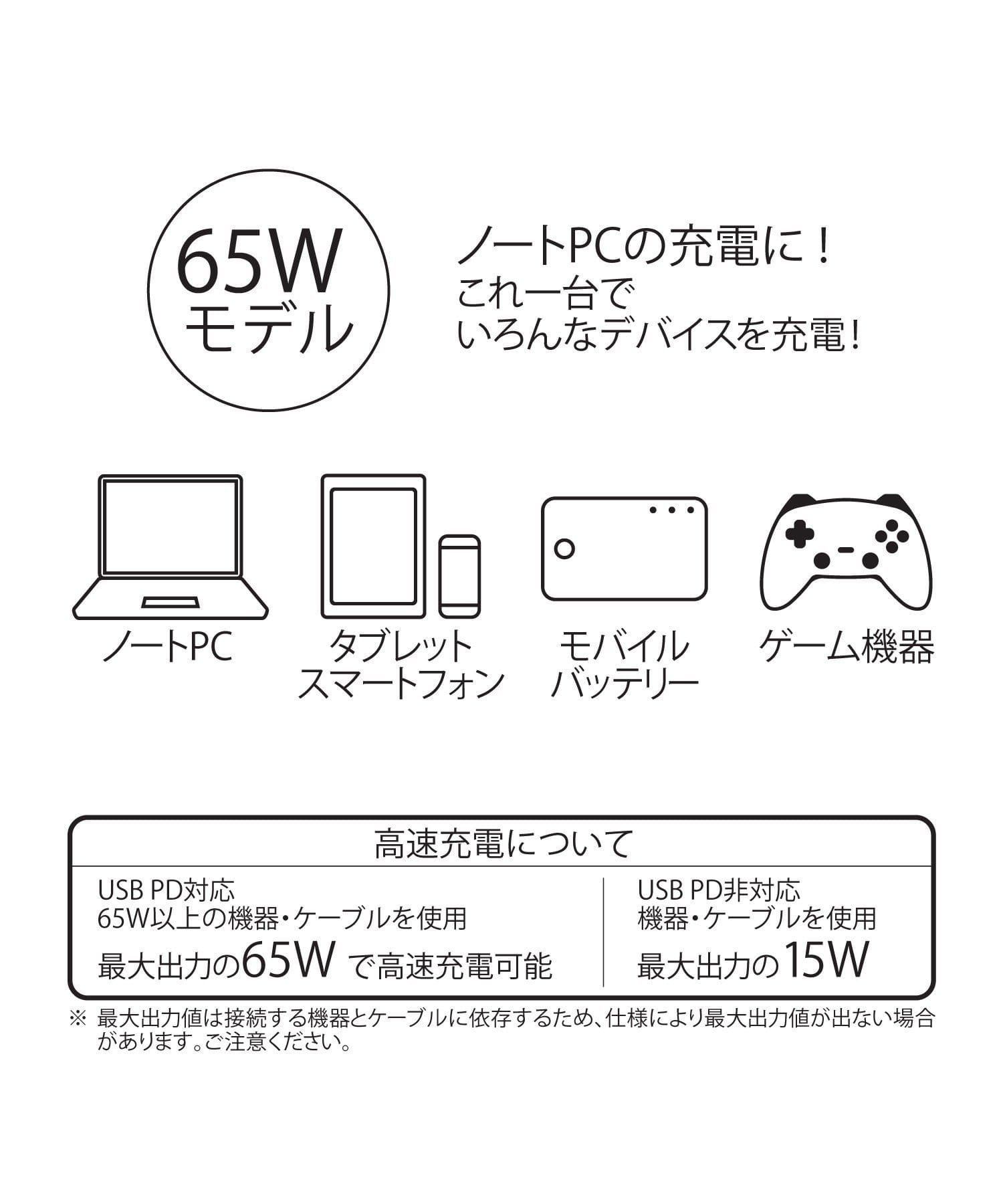 ※高速充電するためには65W以上対応のケーブルを合わせてご使用ください。