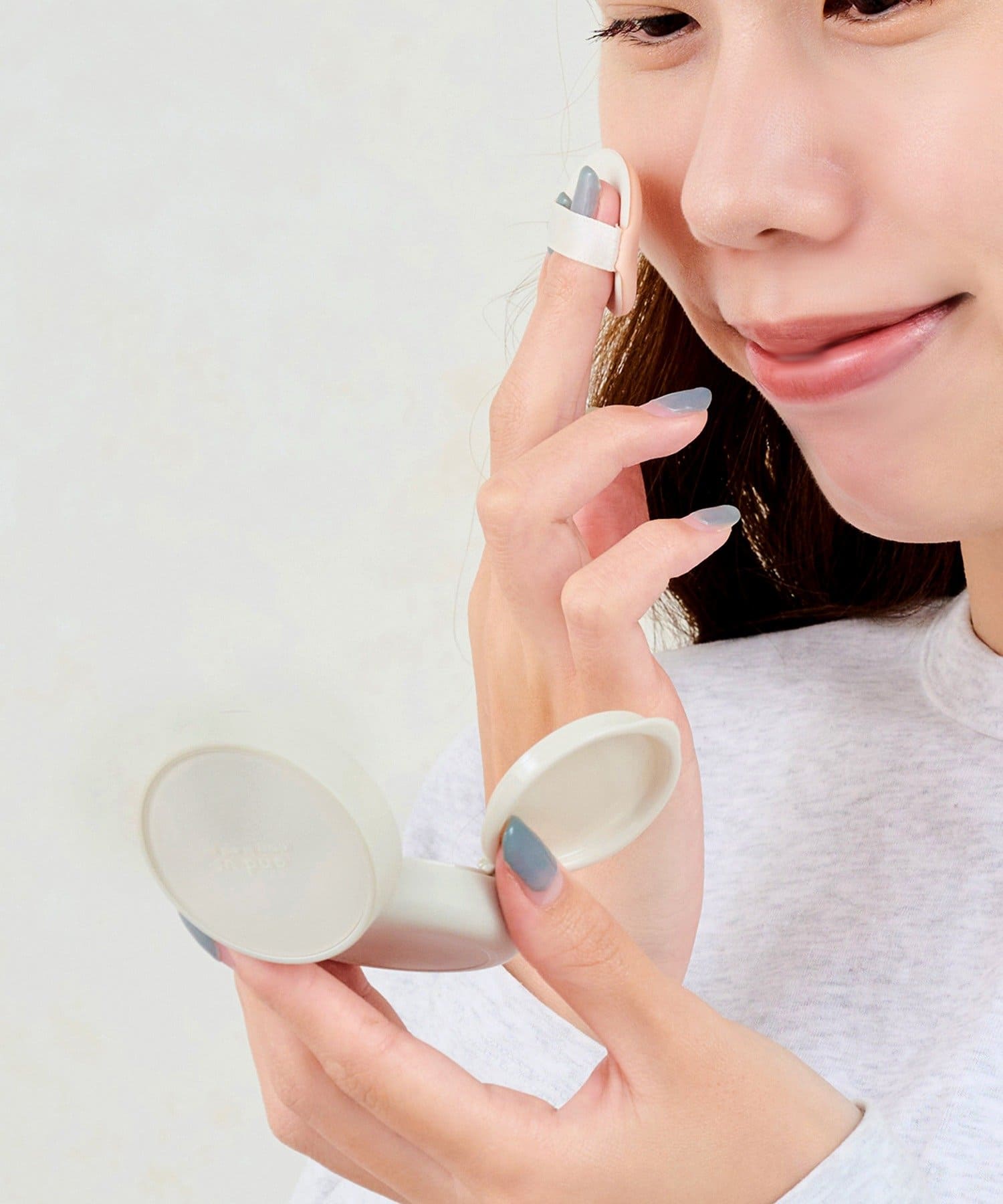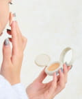 付属のパフに適量をとり、化粧崩れなどの気になる箇所に軽くパッティングするようにつけてください。