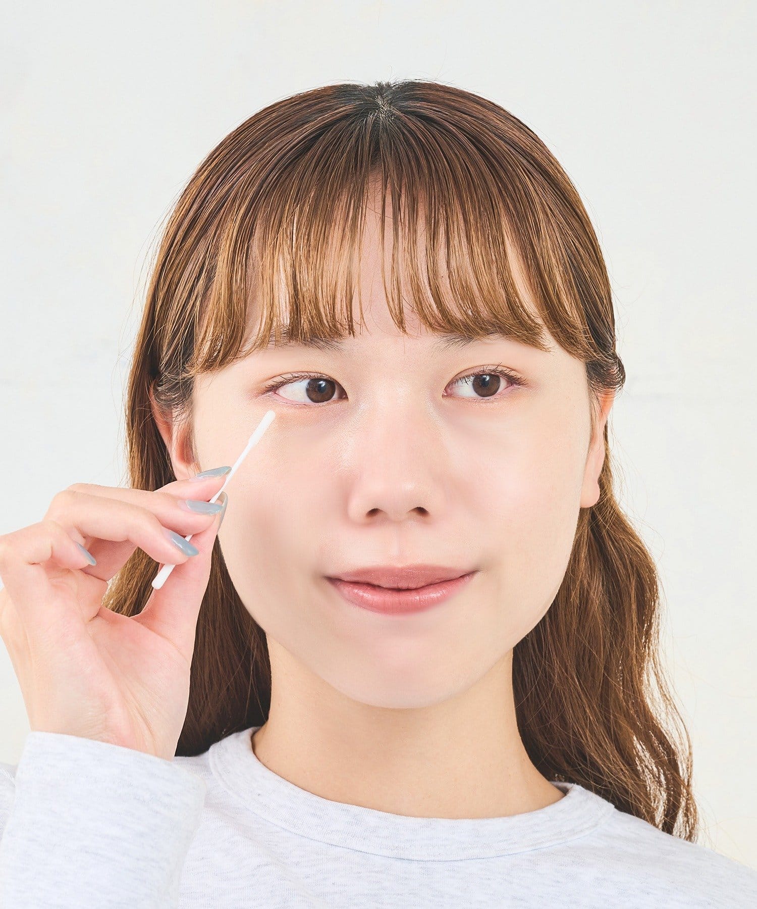 2.綿棒をメイク直ししたい箇所に優しく当て、ご使用ください。