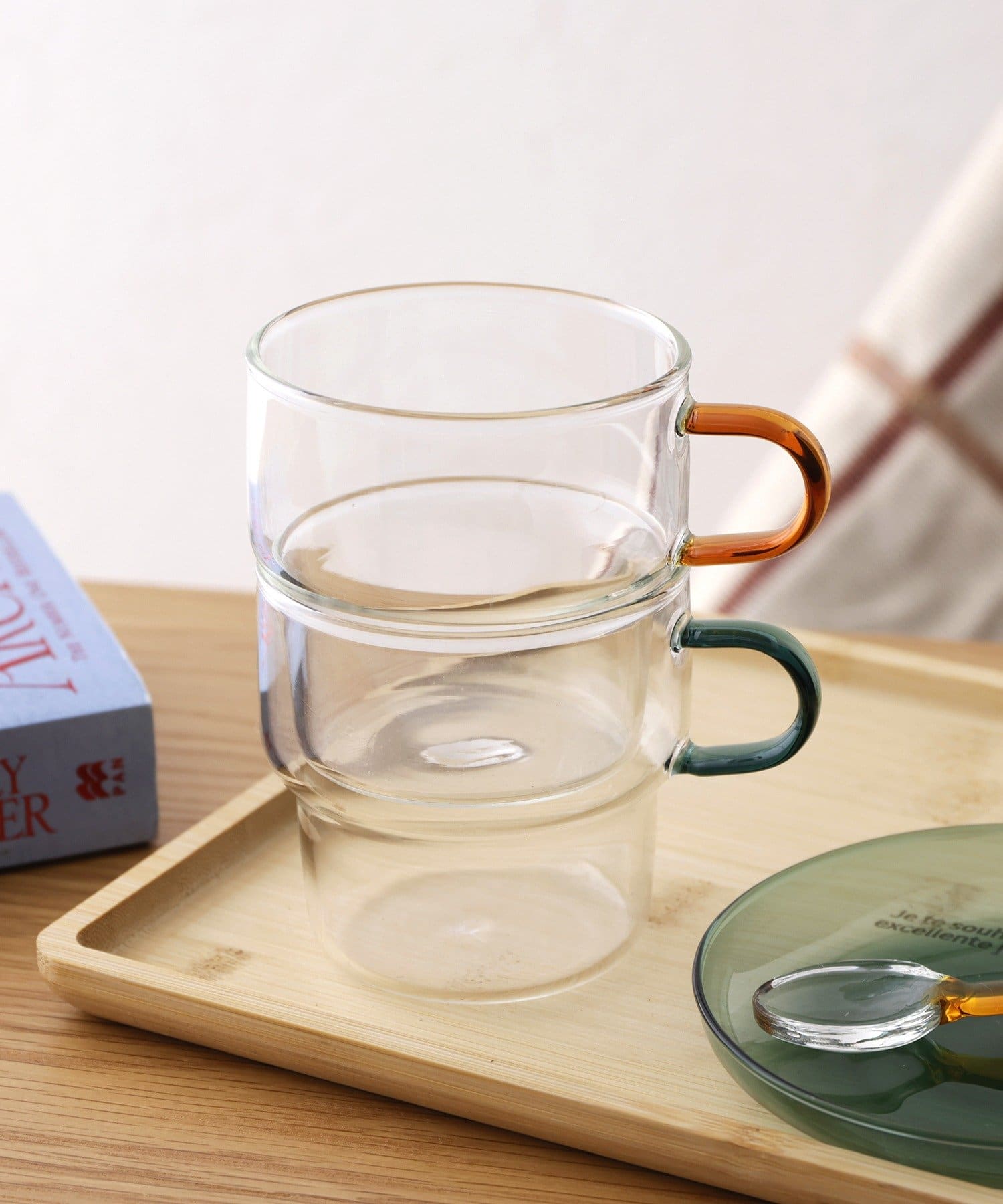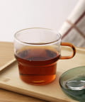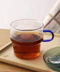 ●持ち手のカラーがお洒落な耐熱ガラスコップ。
