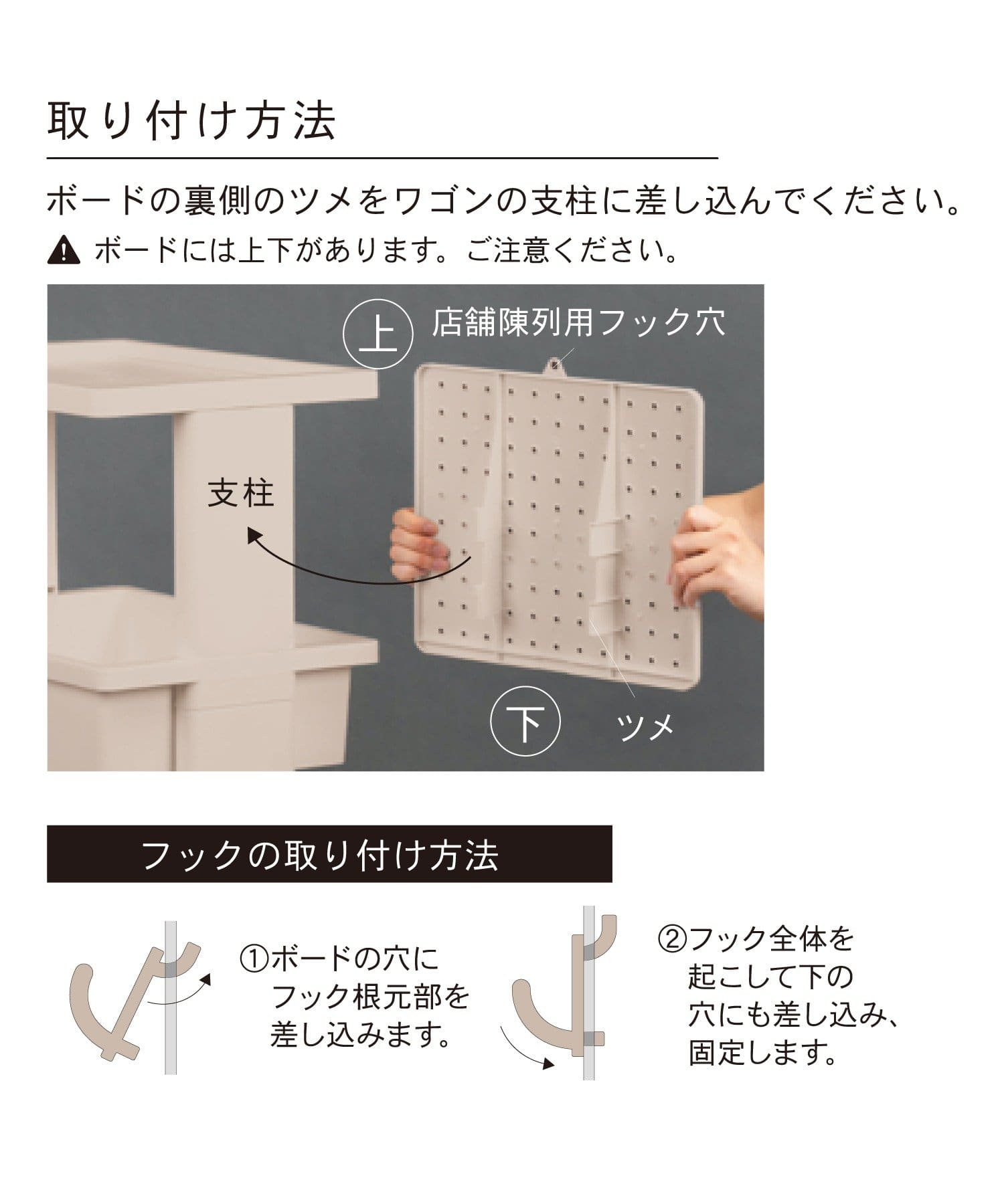 テーブルワゴンテーブルワゴンミニの支柱に取り付けて、手軽に収納力をアップできる有孔ボード。※1