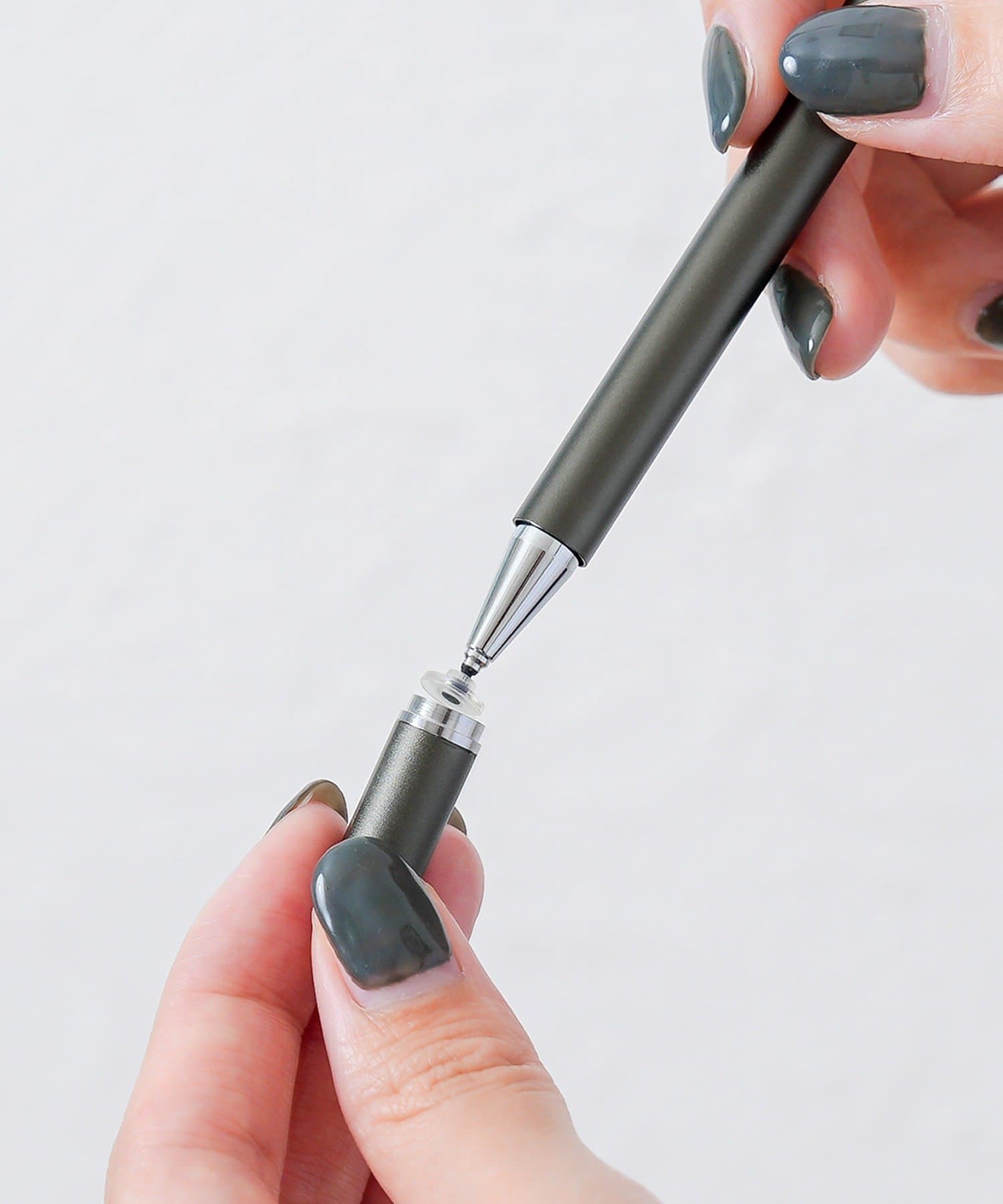 ●ペン先が見やすく、軽い力で書けるディスクタイプと摩擦に強く、スムーズに動かせる導電繊維タイプの2種類付き。