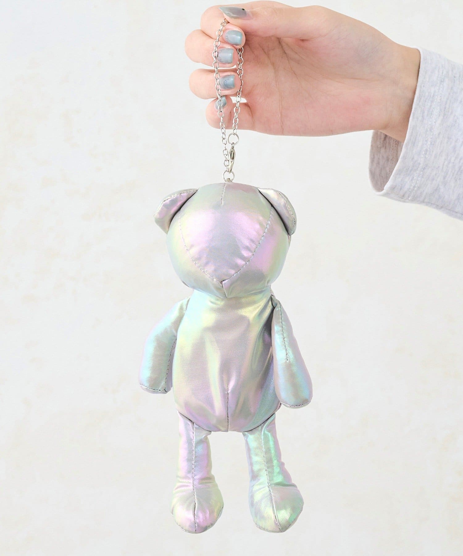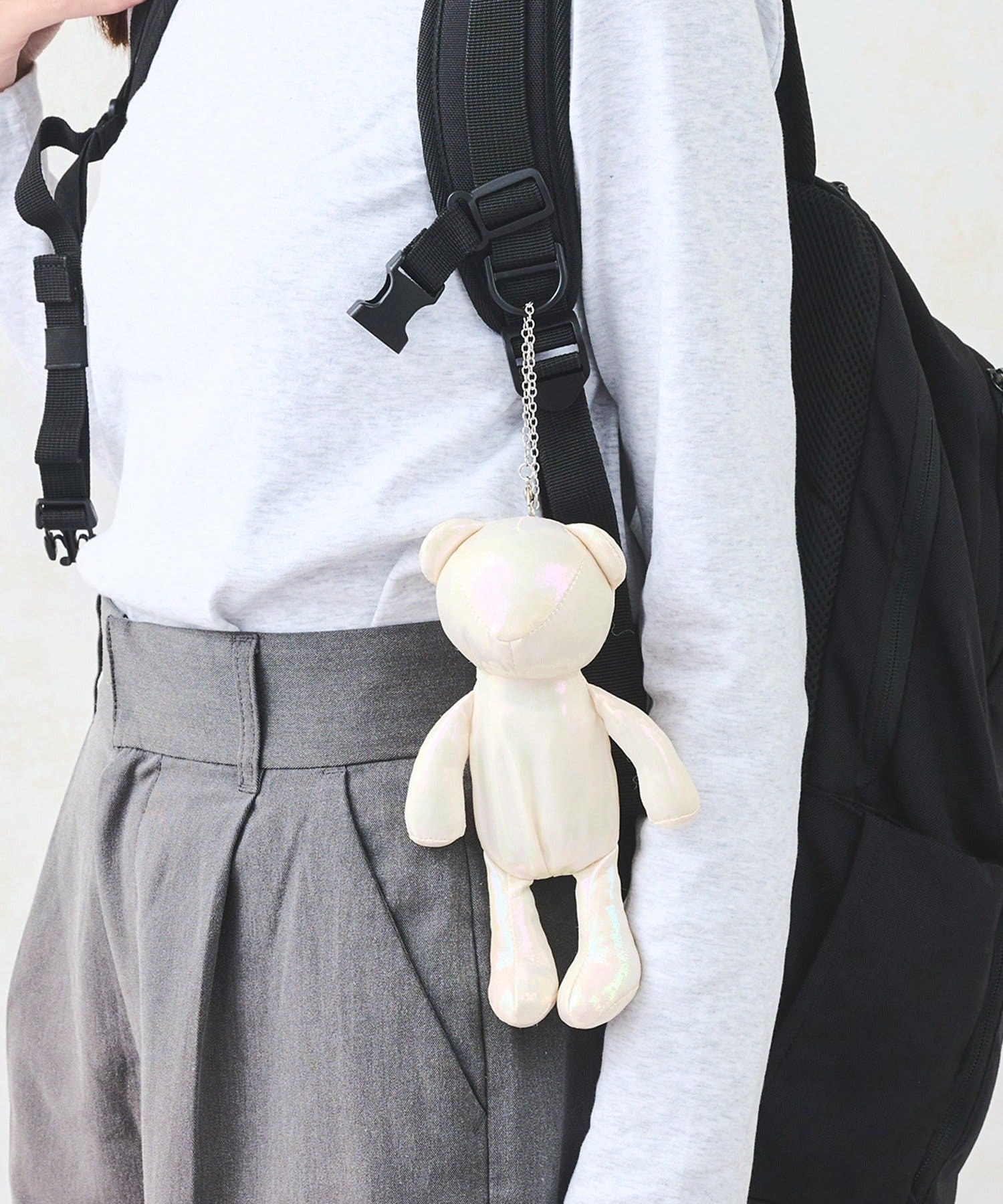 ●オーロラカラーが目を惹くくまチャーム付きエコバッグ◎