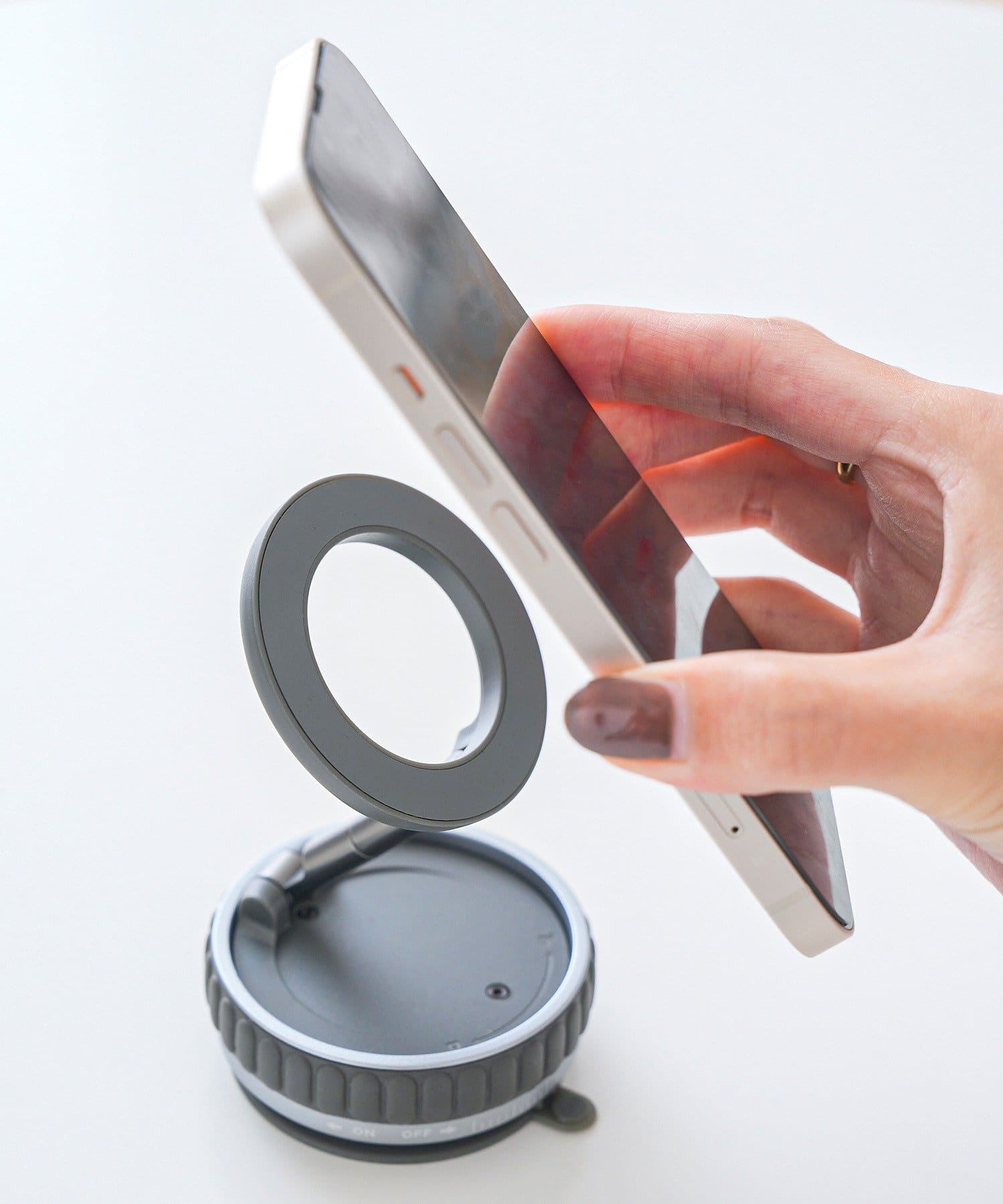 ●マグネット対応のスマホやケースにマグネットで吸着し、ワンタッチで簡単に取り付けできます。