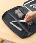 ●色鉛筆など文具の収納に便利なメッシュポケット付き。