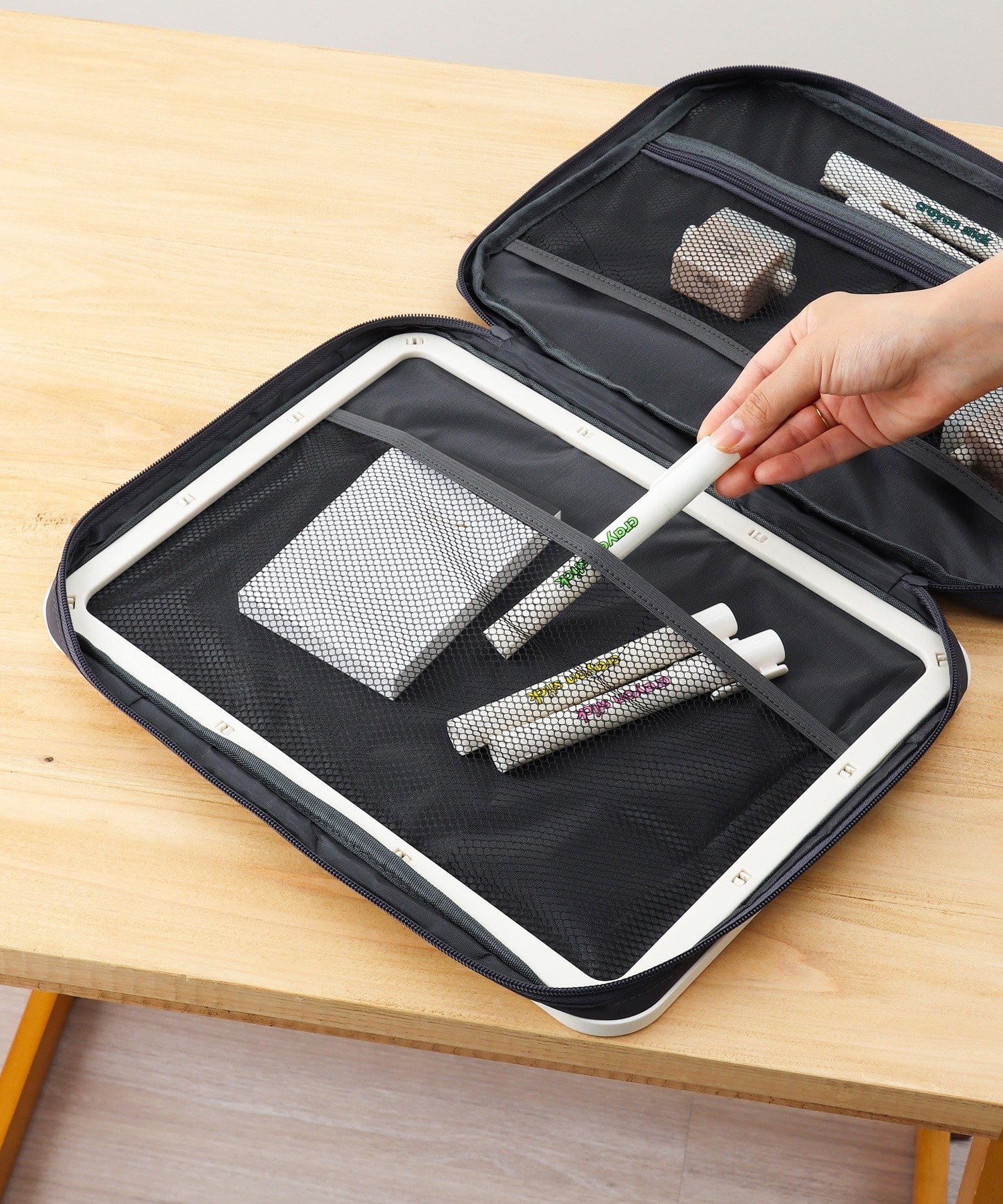 ●バッグがそのまま机代わりに。どこでもお絵描きが楽しめます。