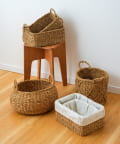●天然素材を使用したナチュラルで温かみのあるバスケット。