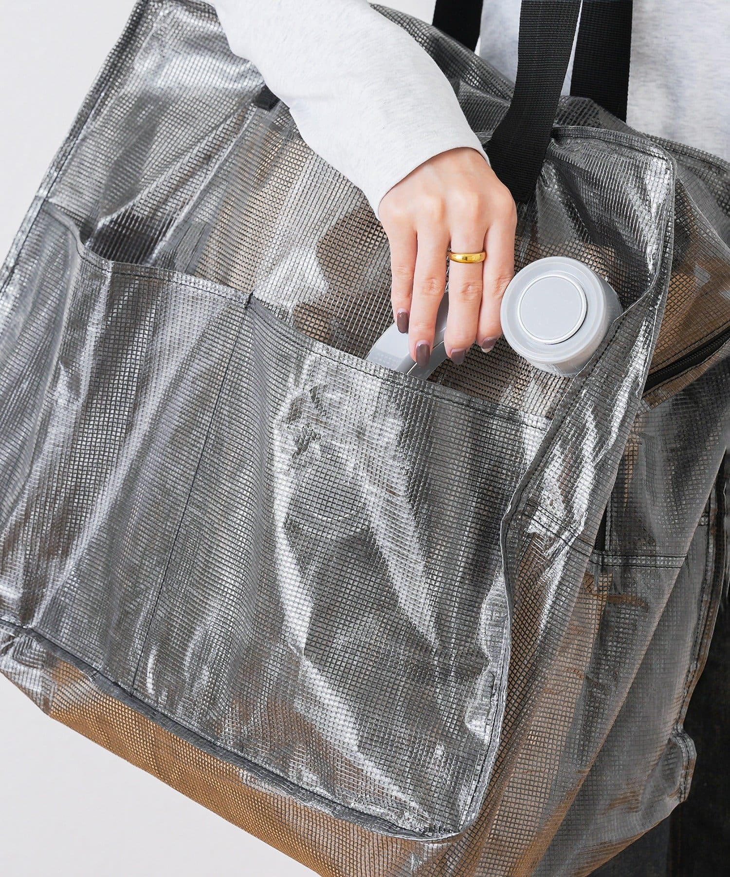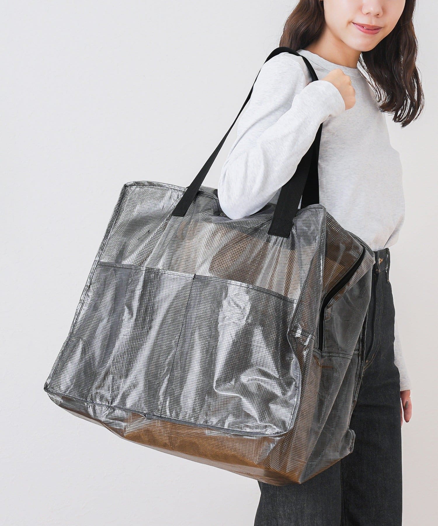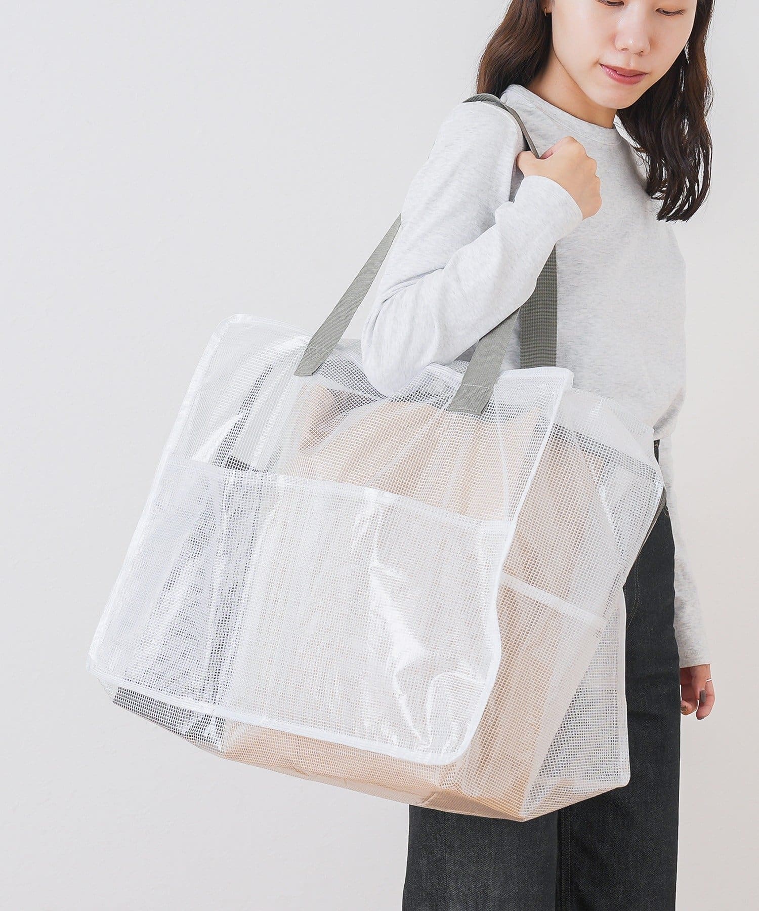 ●材質の特性上、極端に重いものを入れるとビニール部分が伸びる可能性がありますので予めご了承ください。