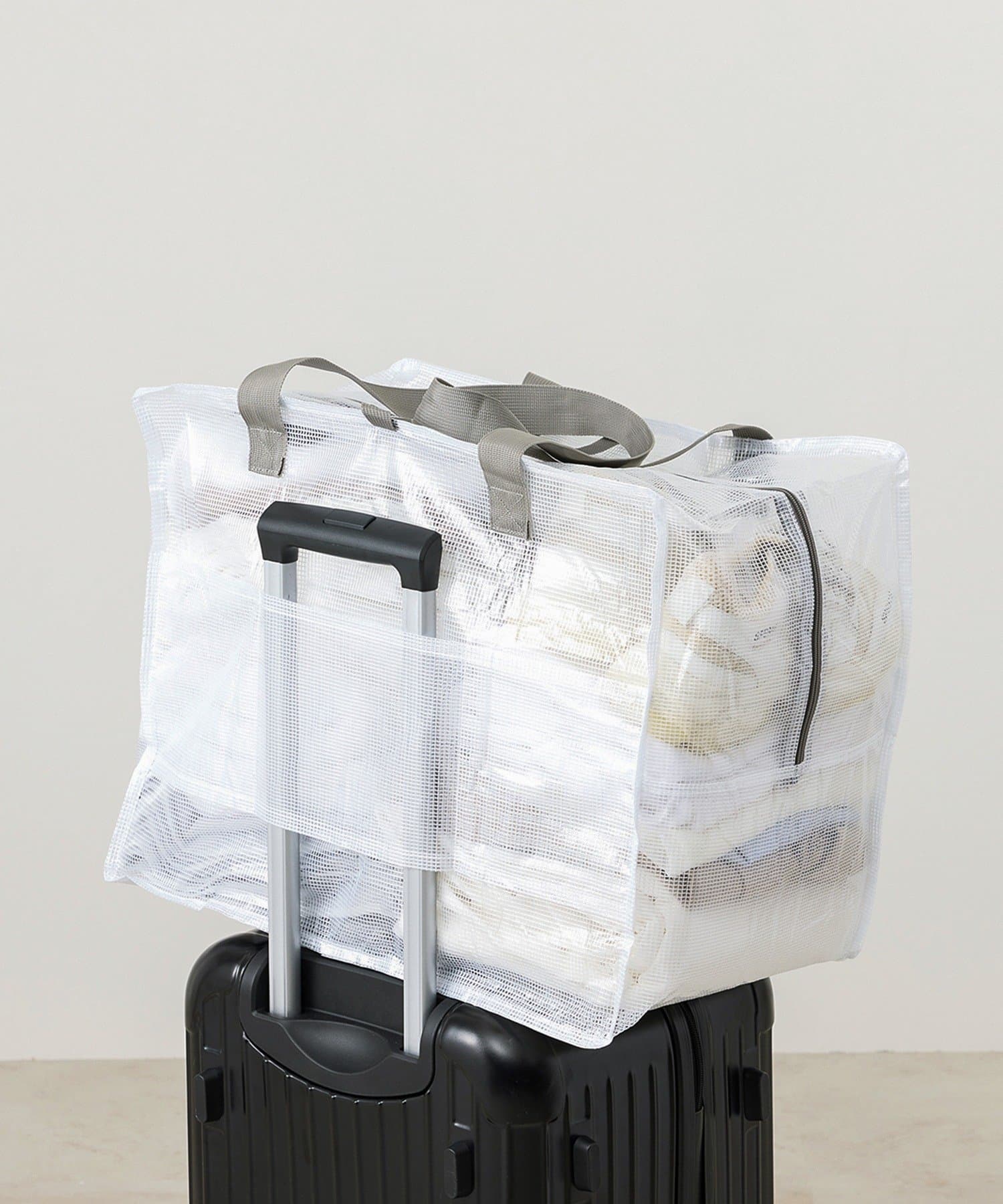 ●キャリーケースの上に乗せる際は、バッグの中身が片寄らないように注意してご使用ください。