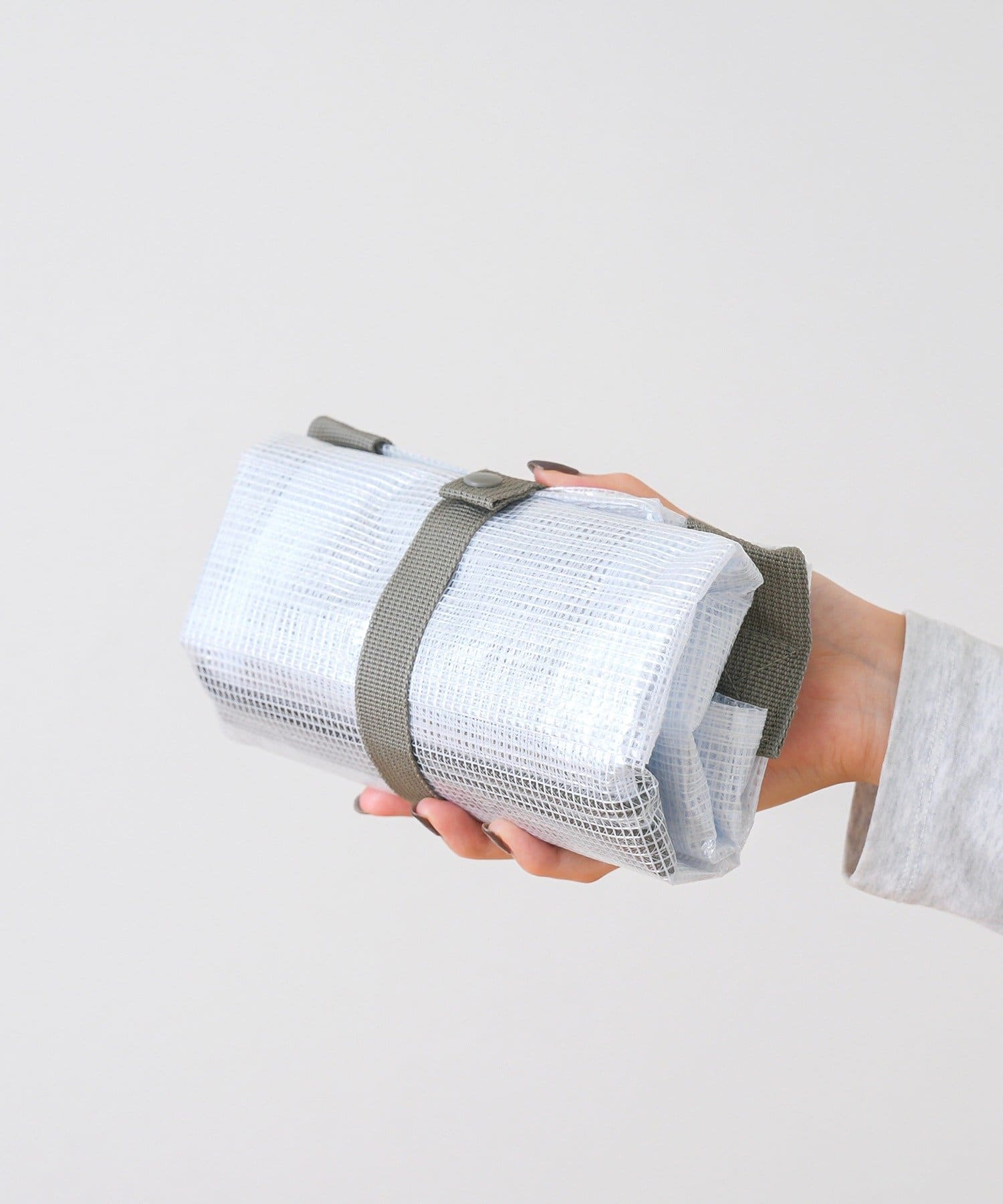 1.持ち手を畳み、三つ折りにする。