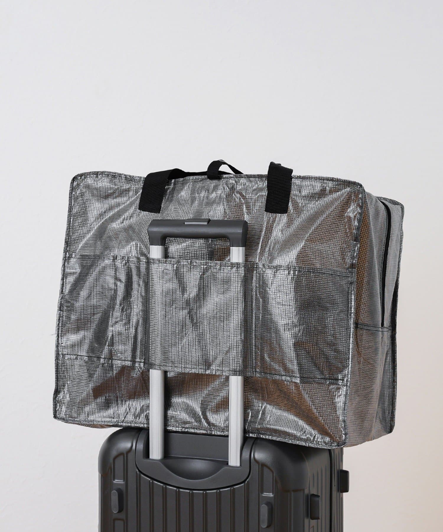 ●ビニール製で濡れにくい大容量のキャリーオンバッグ。