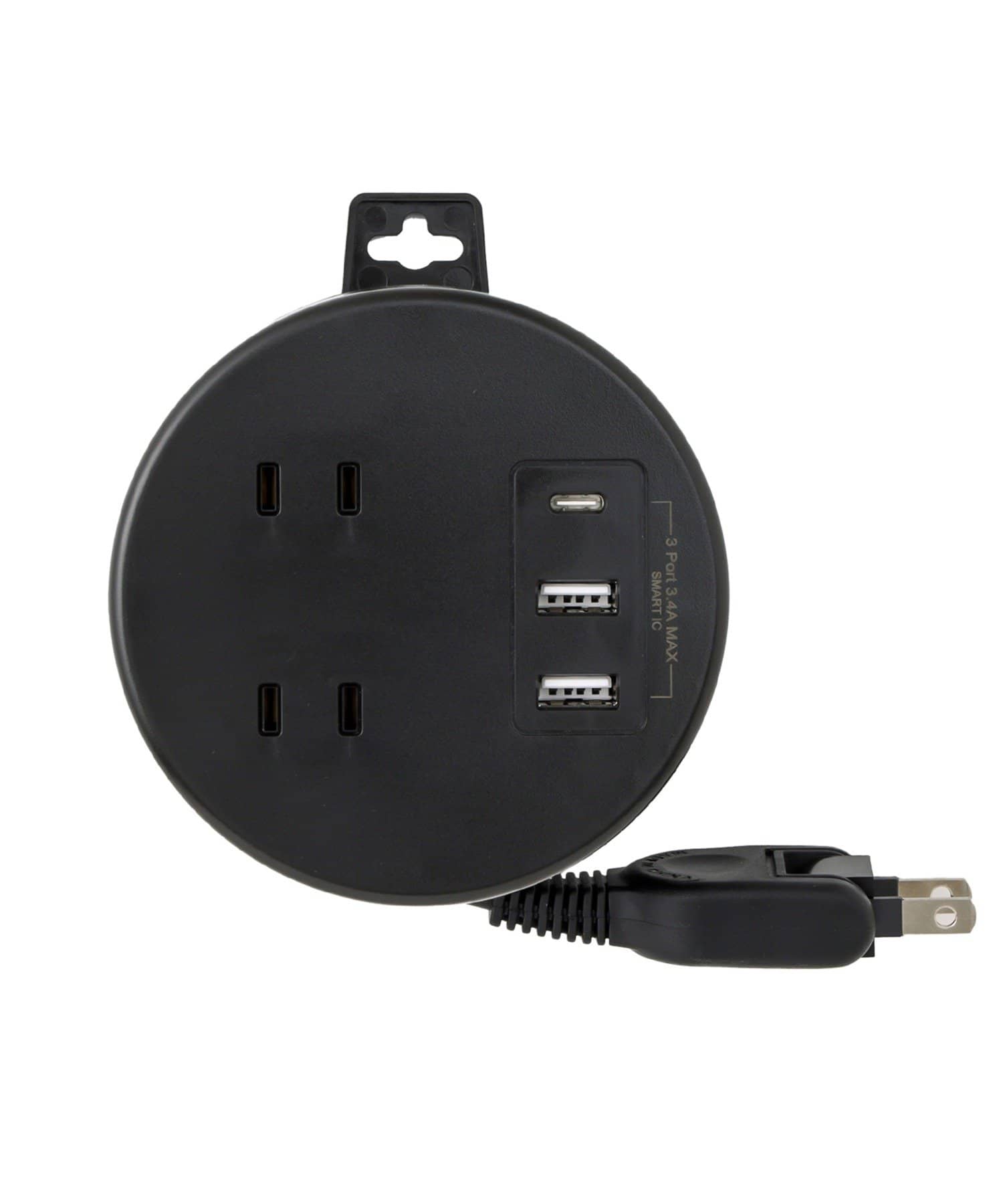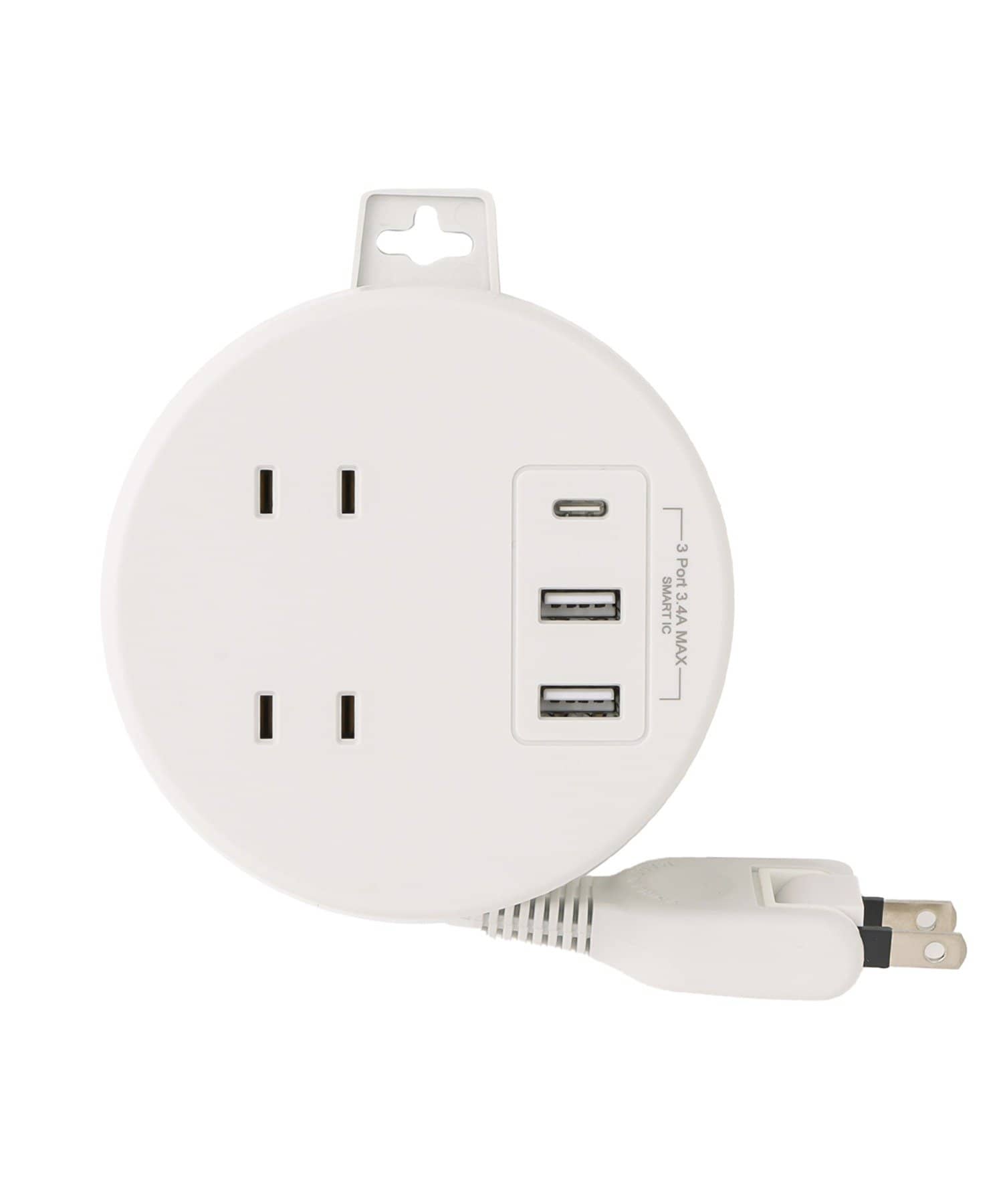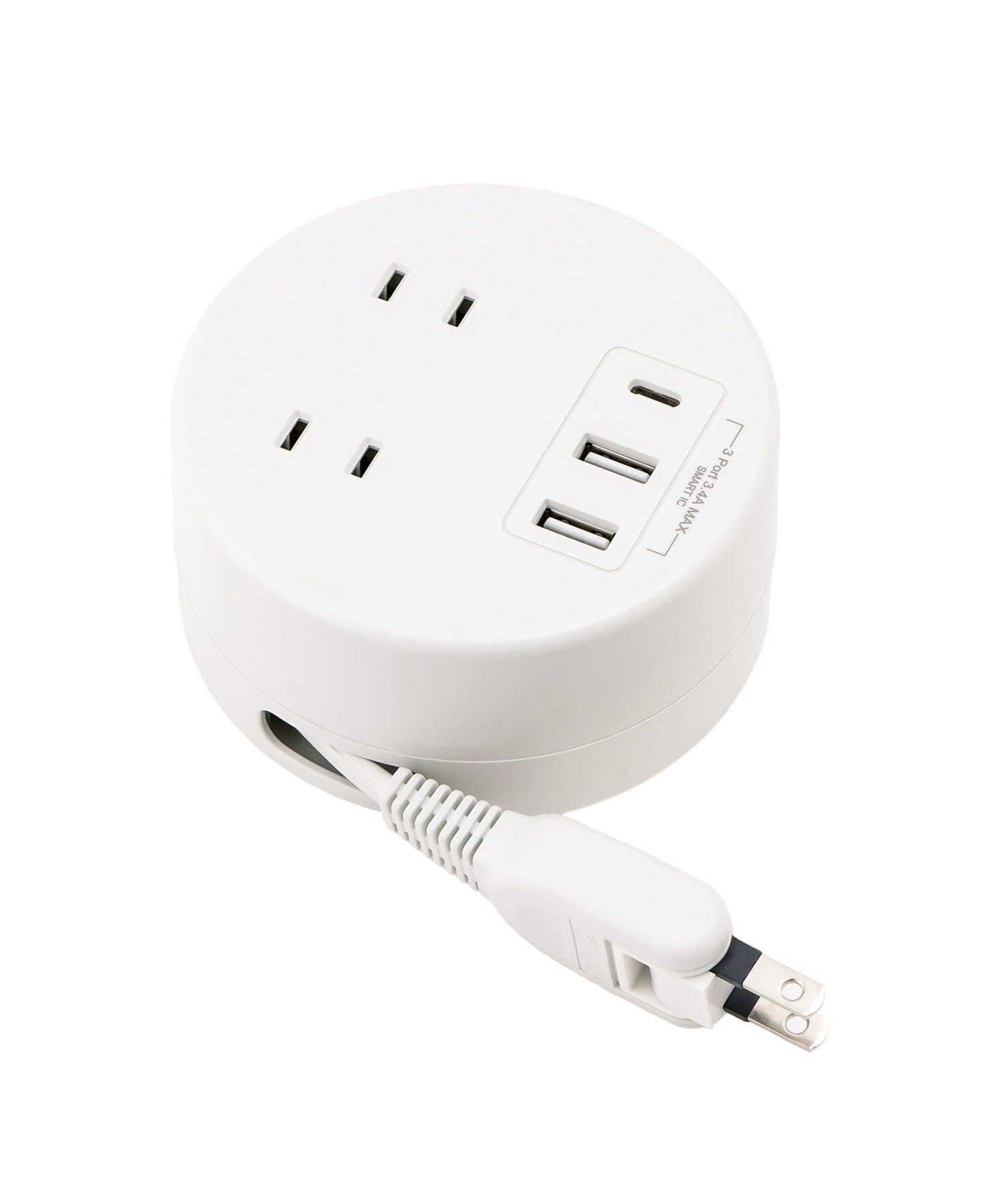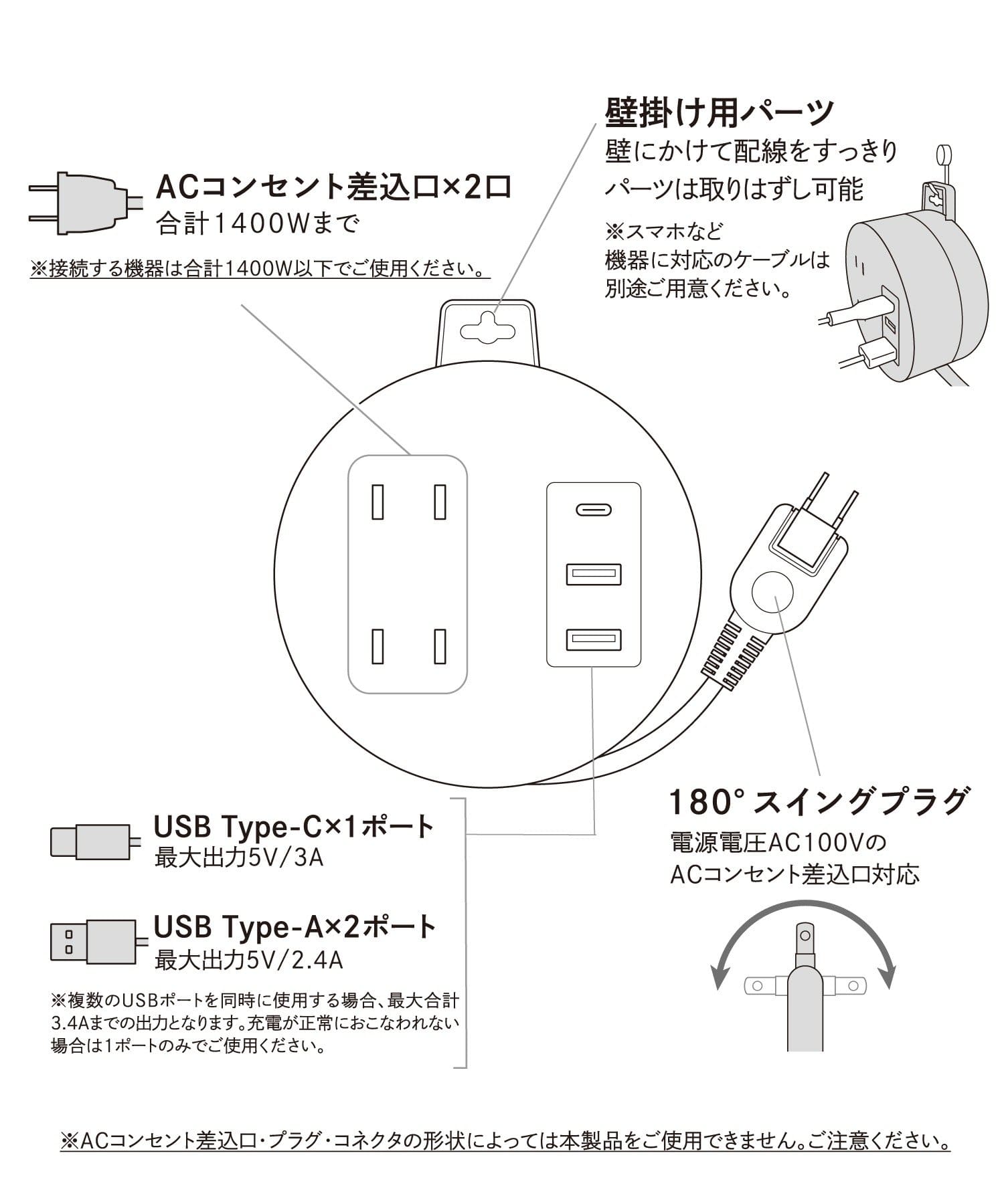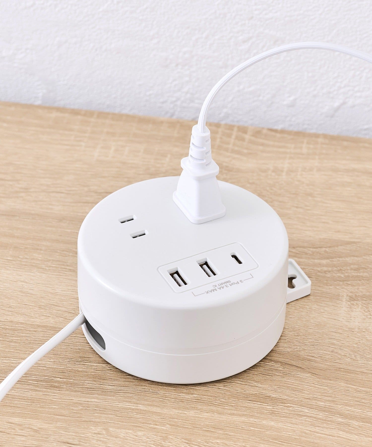 丸型電源タップ(AC×2/USB×2/TYPEC×1):1m
