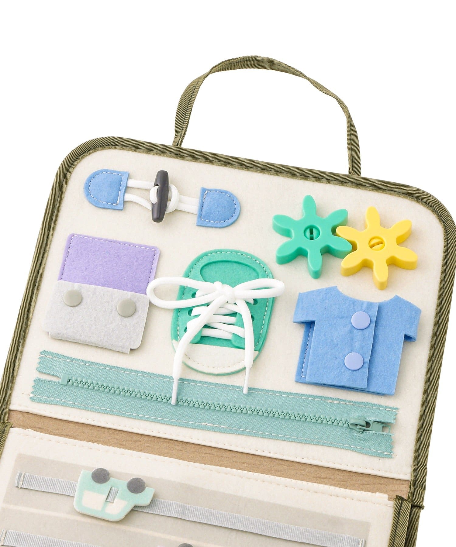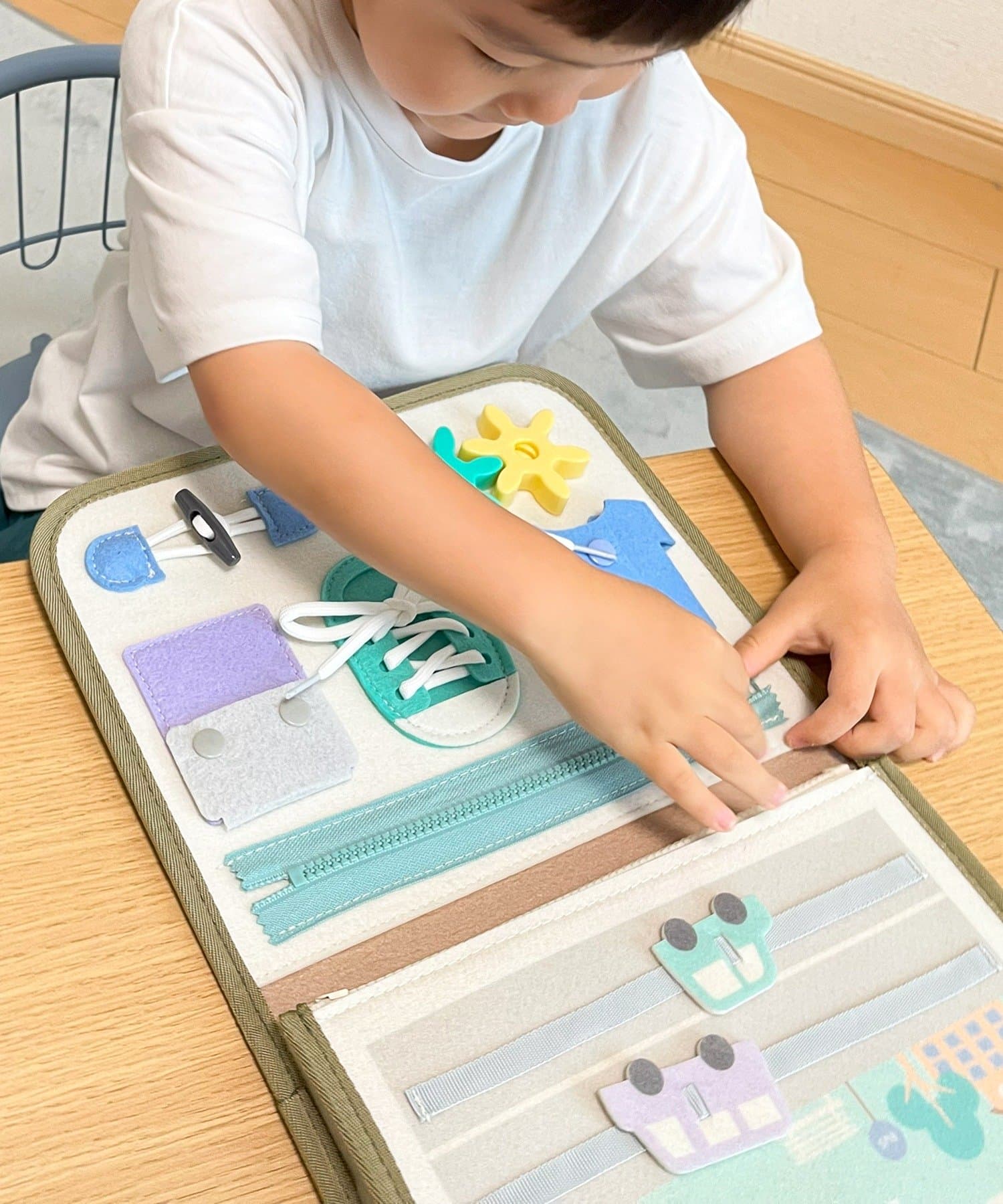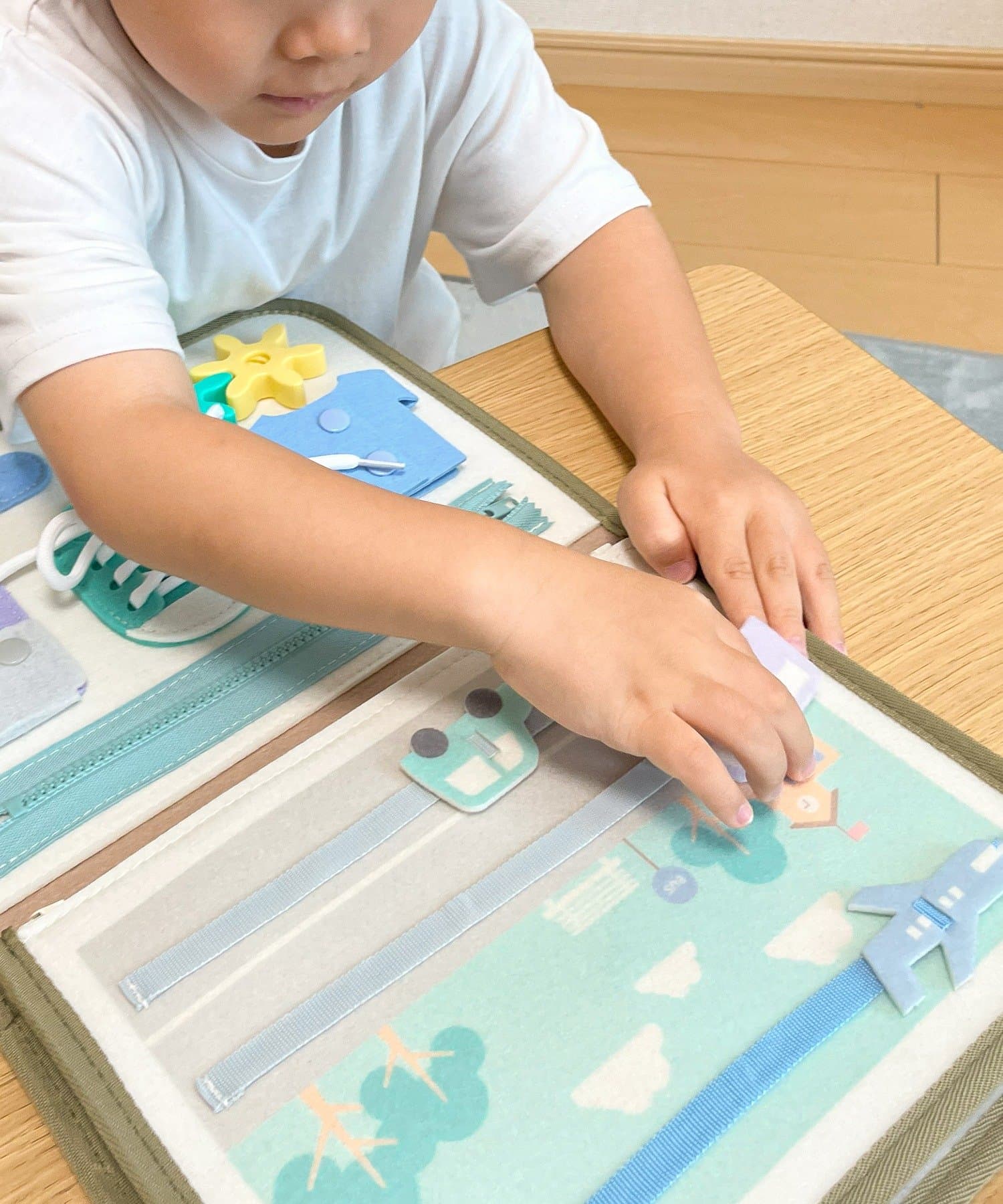 楽しんで触ってあそんでおり、ボタンや紐、マジックテープは洋服着る時の練習にも良さそうでした‼︎