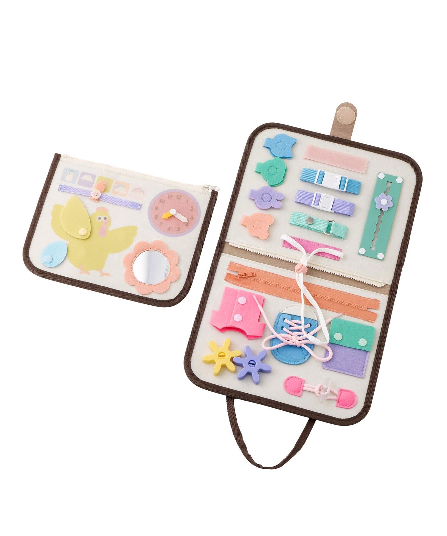 購入場所:店舗お手製のビジーブックを作って遊んでいましたが、入れたいものに限界が…そんなときこちらに出会って即購入!色もカラフルで可愛い💕1歳ベビーにはまだ難しいところもあるので、まだまだ活躍してくれる予感✨