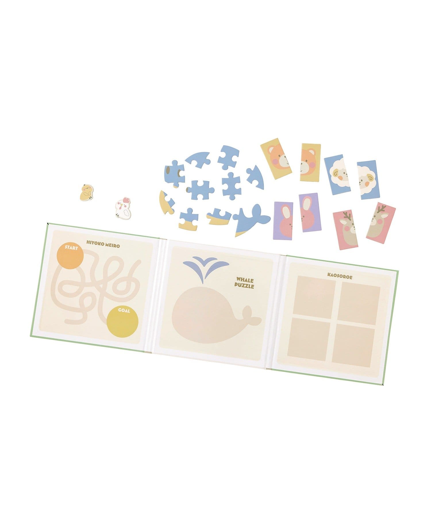 右の絵合わせと真ん中のクジラのパズルで遊んでいます。