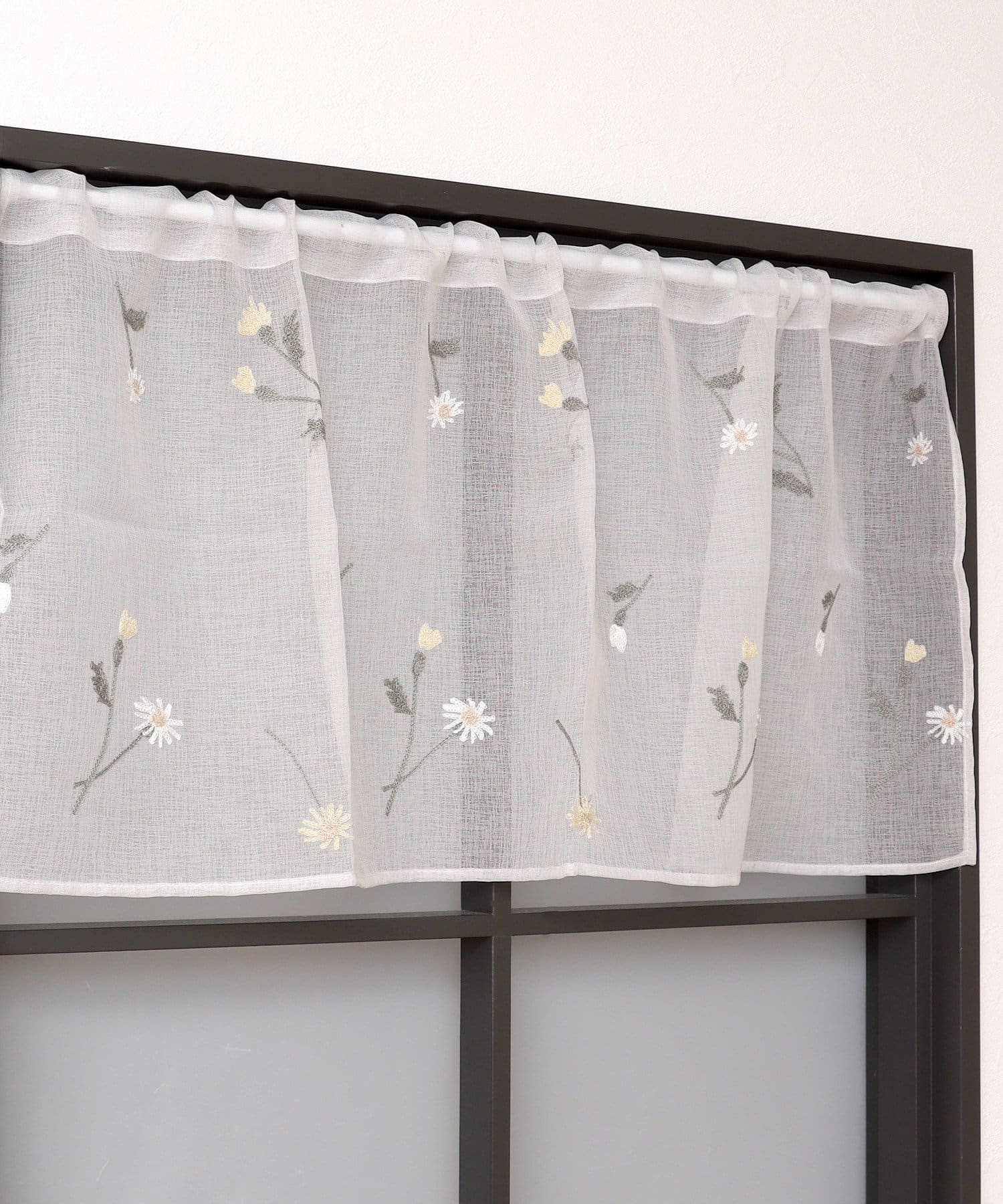 ●繊細なコスモスの刺繍がかわいらしいカフェカーテン。