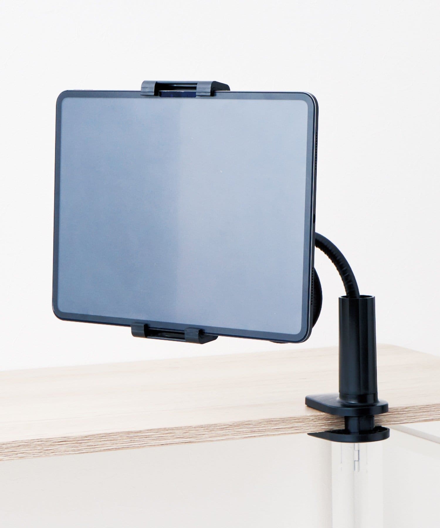 ●テーブルや柱に取り付けられるタブレットホルダー。