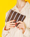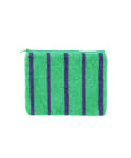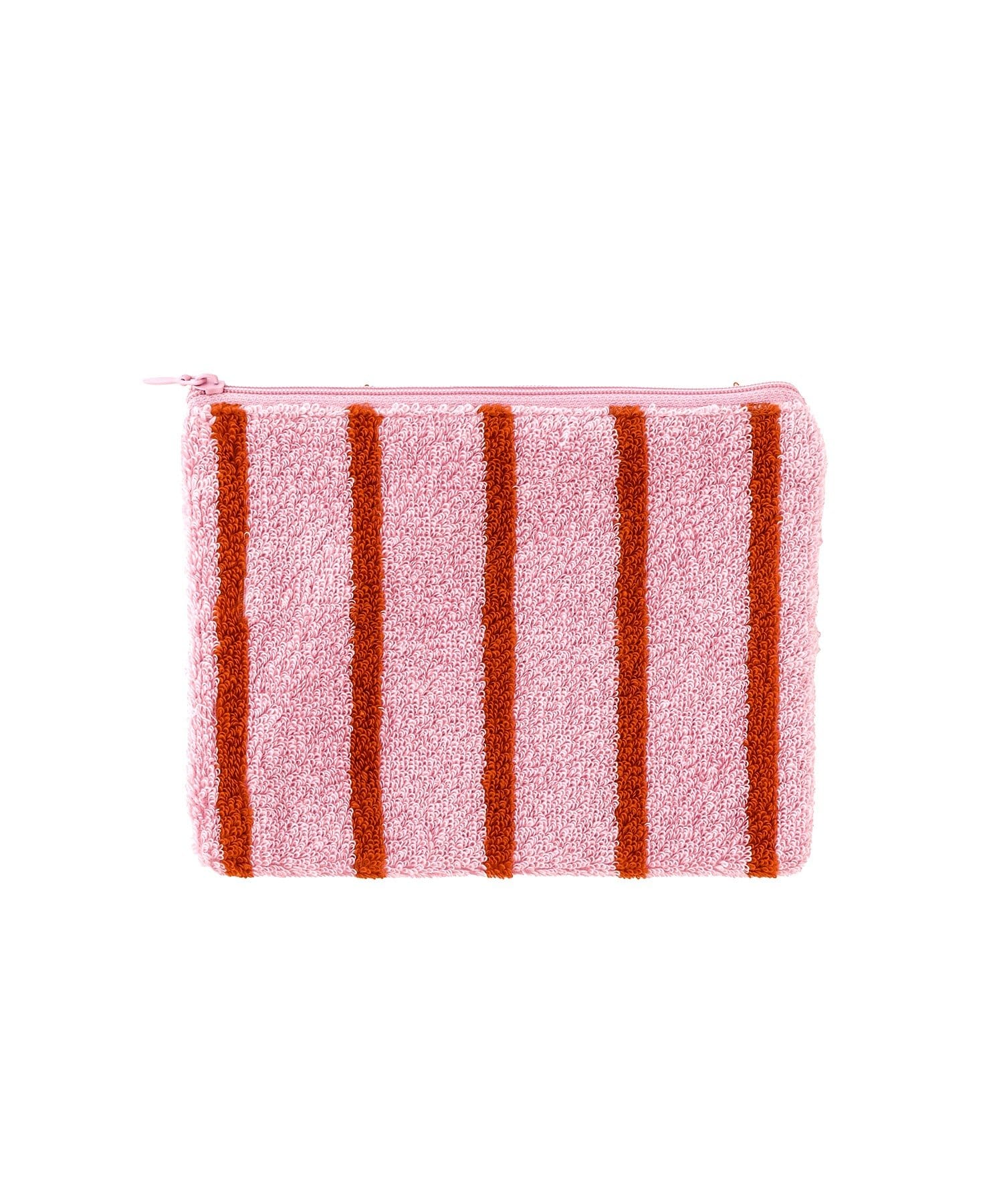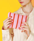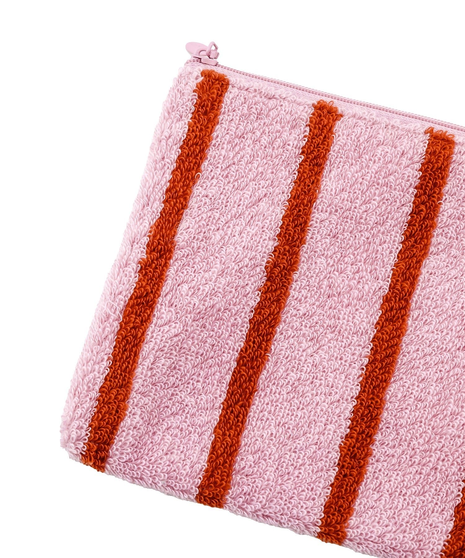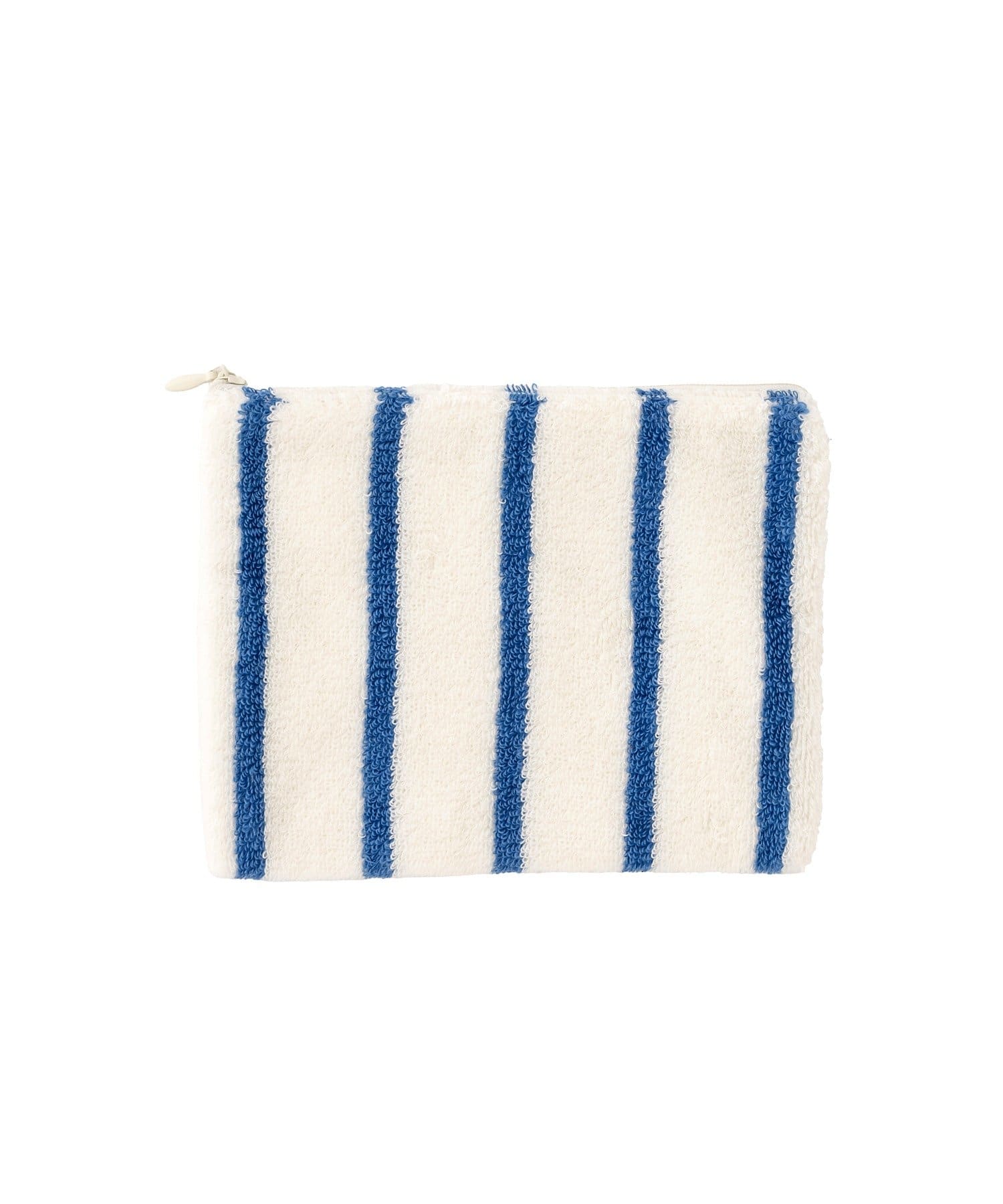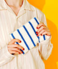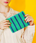 ●ふんわりタオル地にカラフルな縞模様が施されたポーチ。
