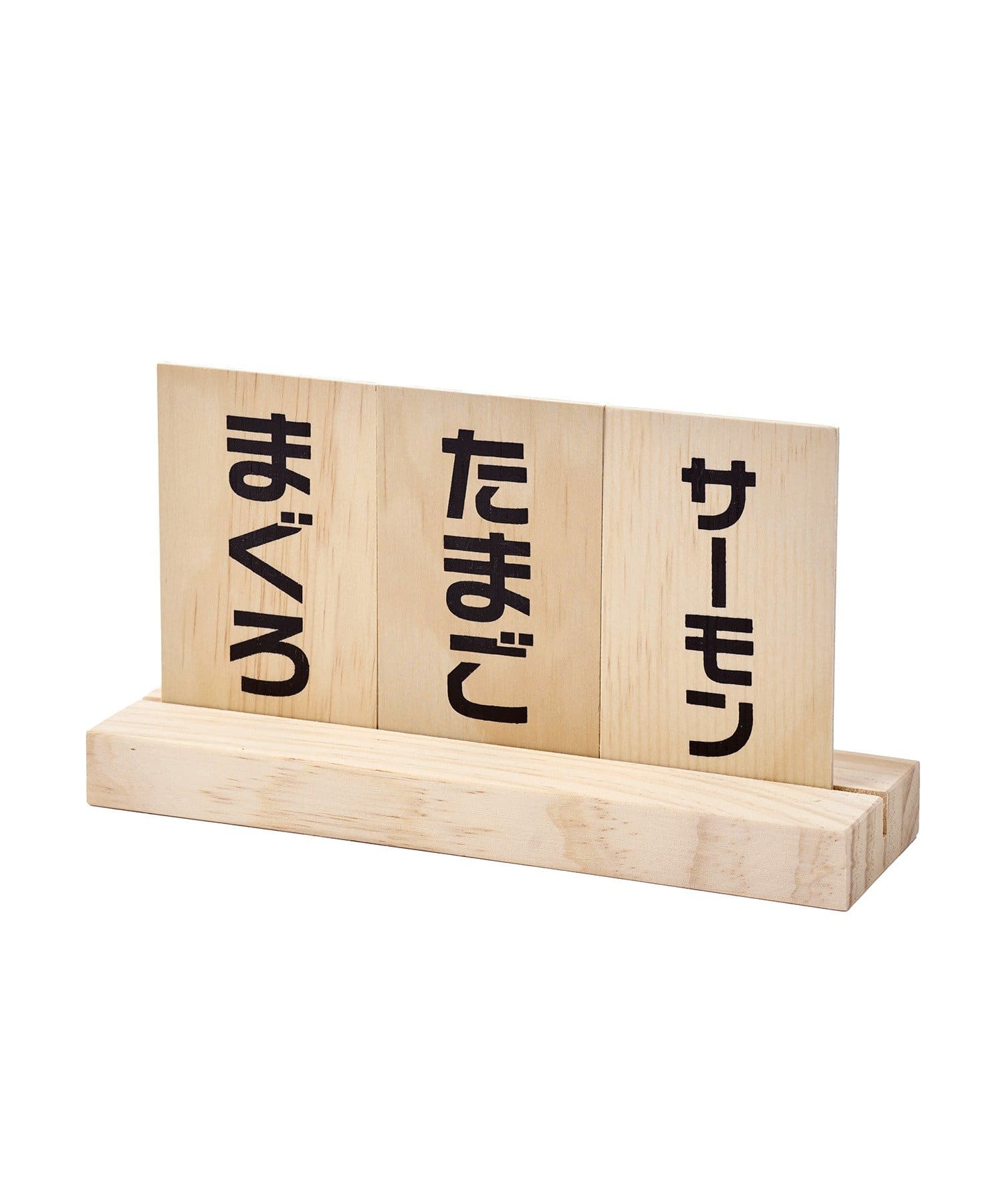 セット内容:台座×2、メニュー表板×10(まぐろ・たまご・サーモン・いくら・ネギトロ・コーン・えび・はまち・たい・ぶり)