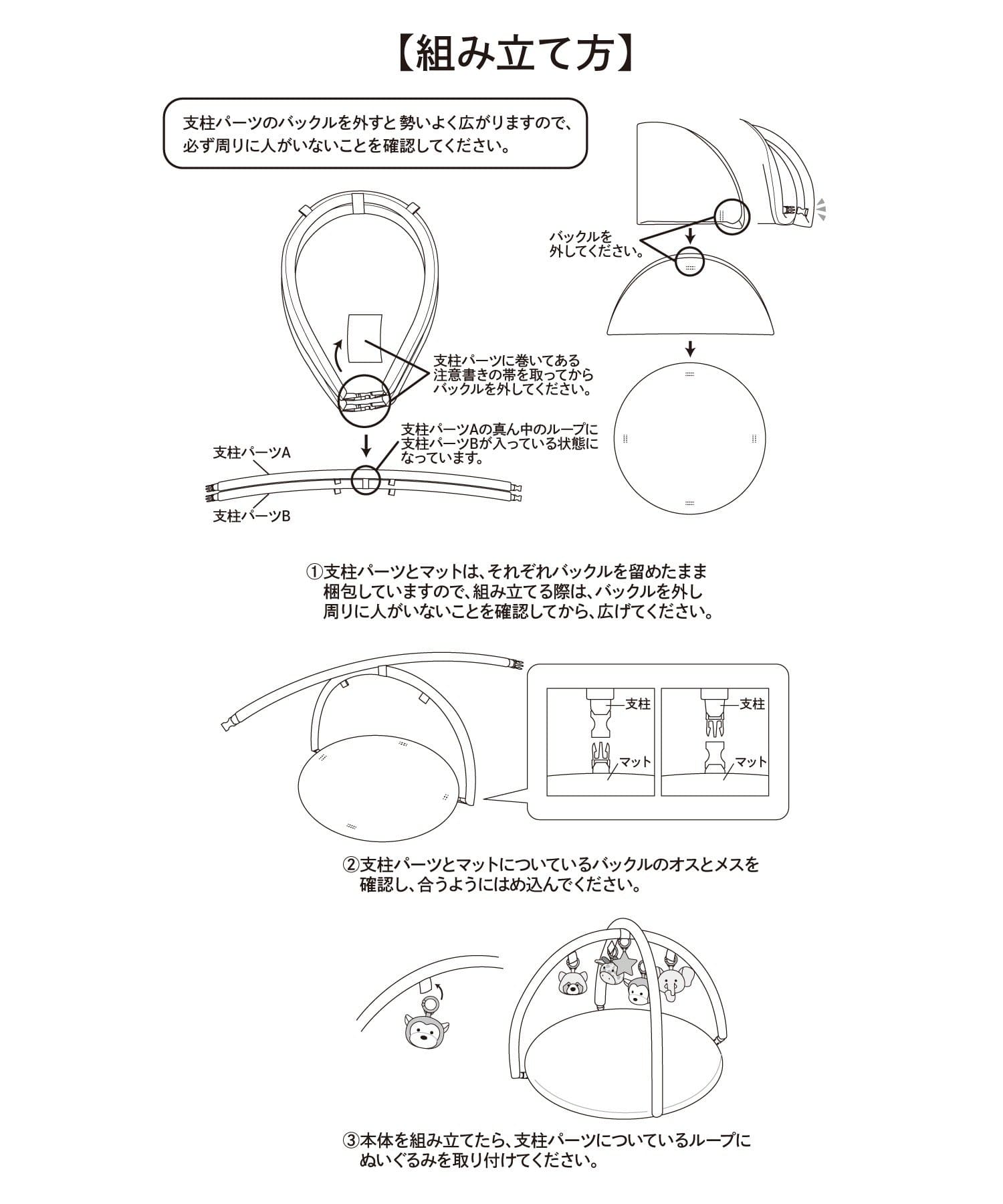 ●絶対にお子様を乗せたマットの上で作業しないでください。作業中、お子様が近くにいないことを確認してください。アーチが跳ねてあたると危険です。