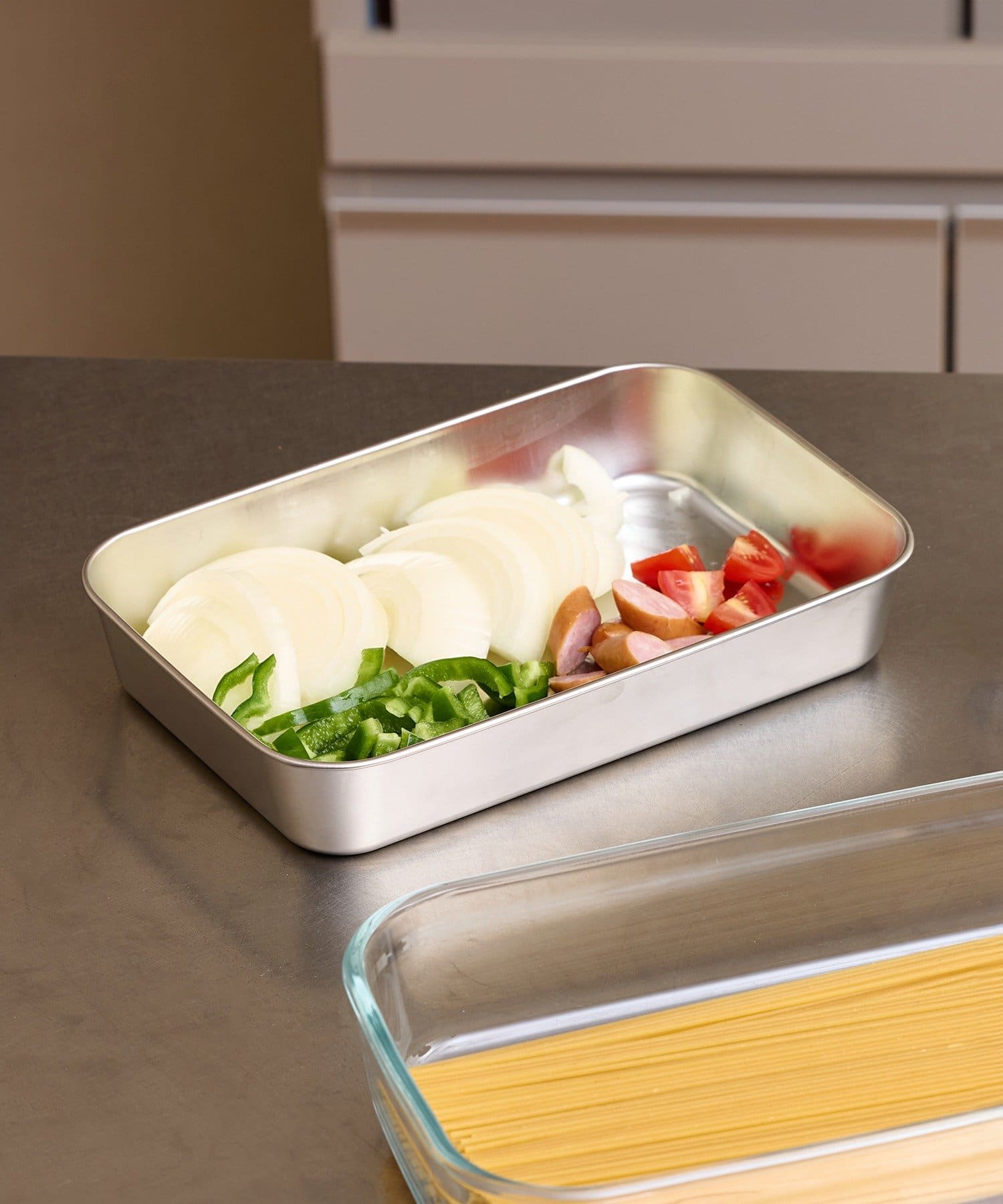 ●蓋と網付きのステンレスバットが各2個セットになっています。