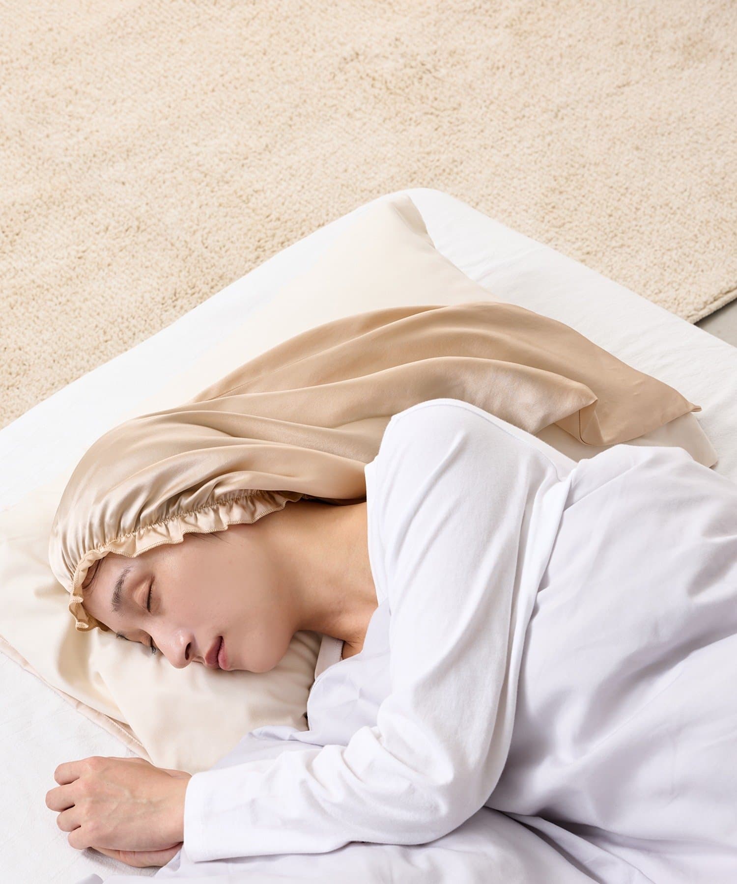 ●シルク素材が頭皮や髪のうるおいを逃しにくく、しっとりとした状態を保ちやすくします。