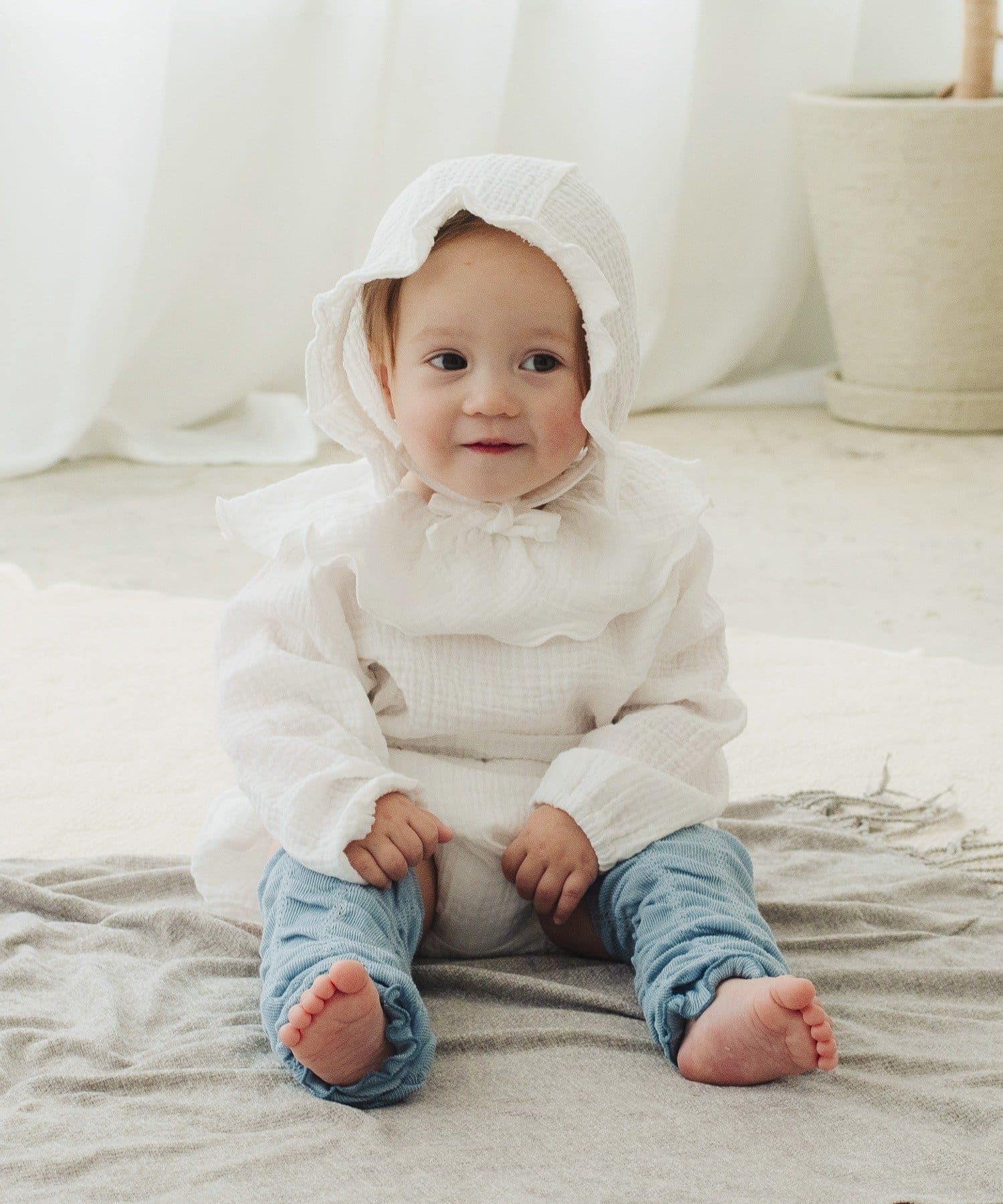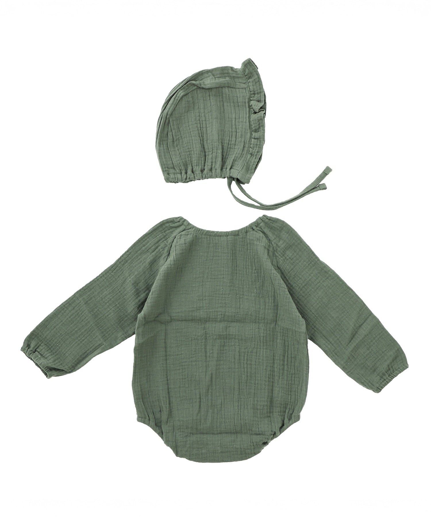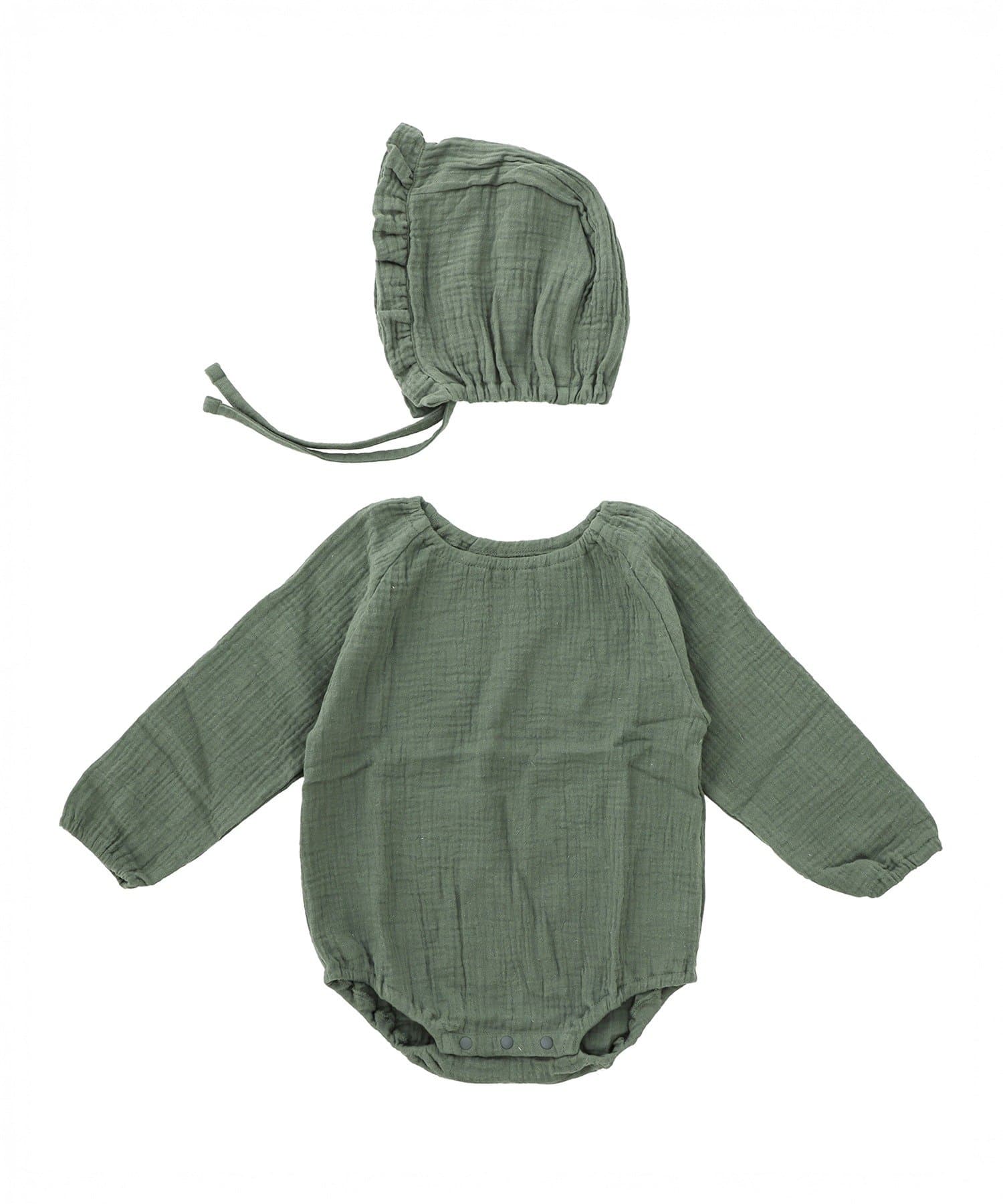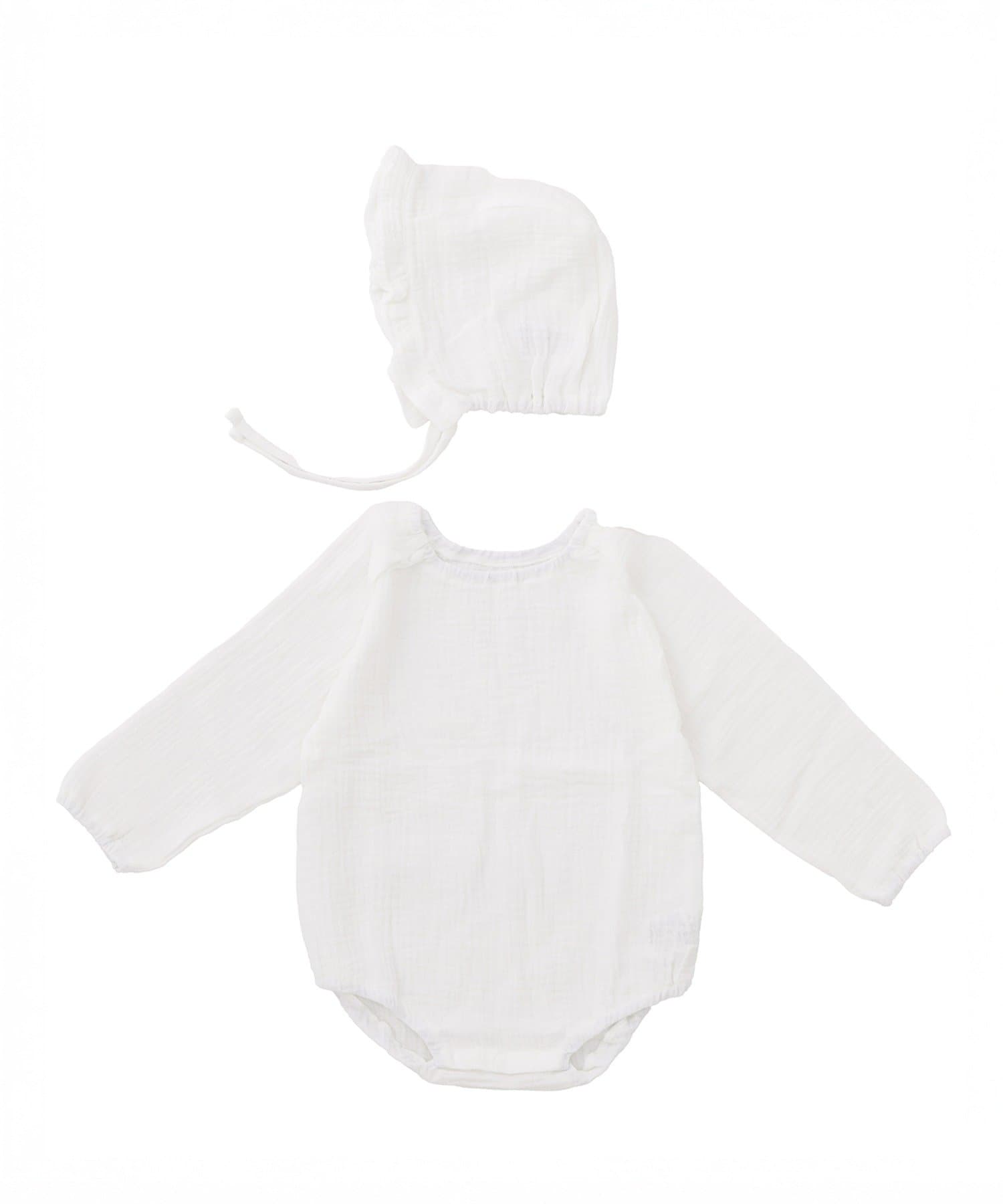《WEB限定商品》ガーゼロンパース&ボンネット:60~80cm