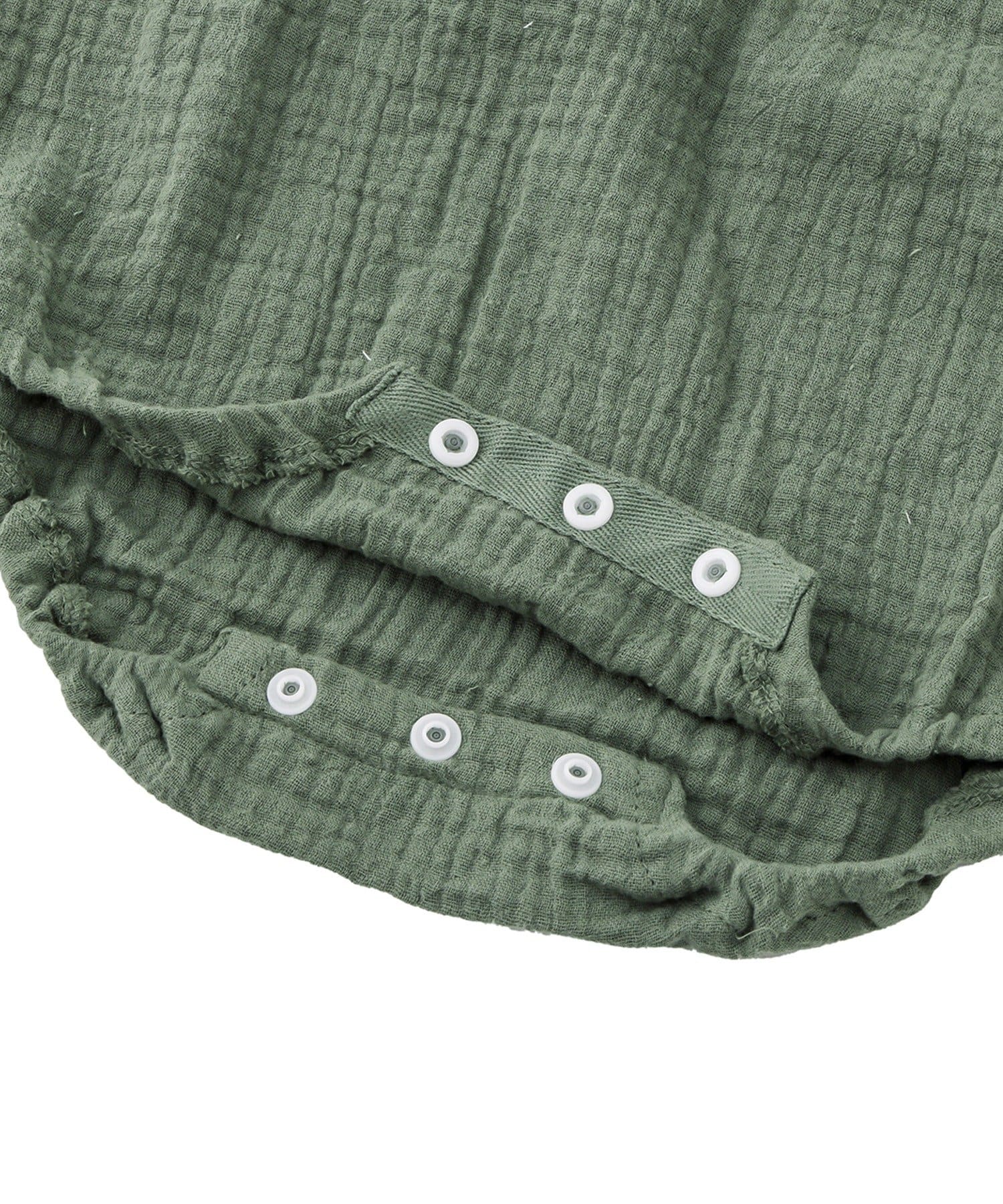 ●ロンパースにはスナップボタン付きで、おむつ替えもスムーズです。