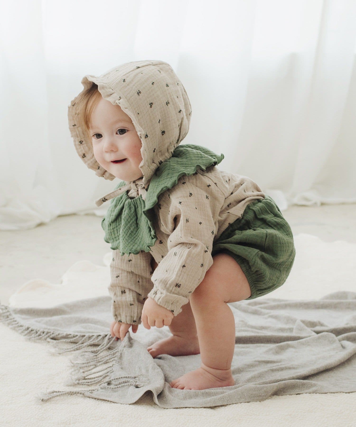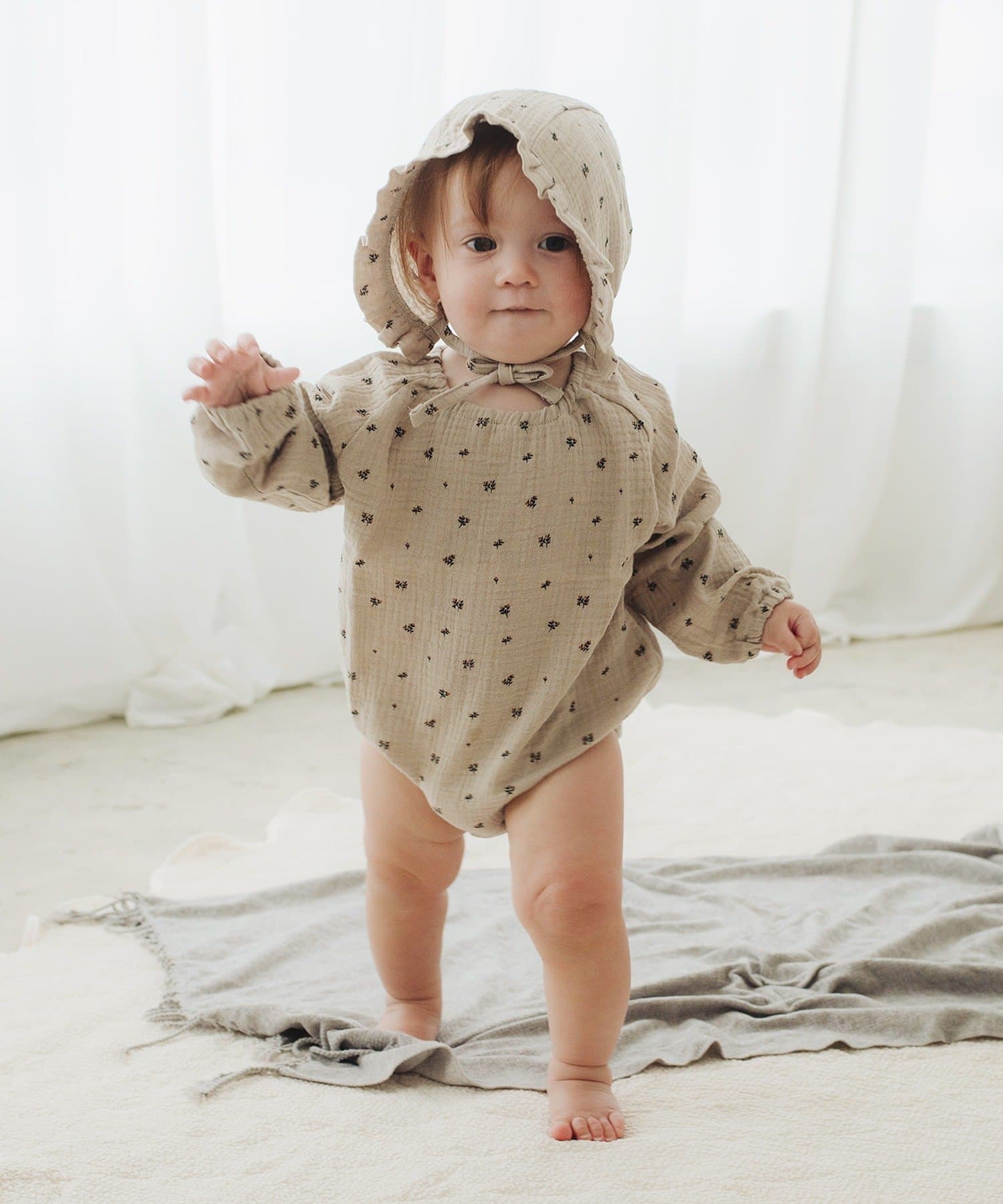 《WEB限定商品》ガーゼロンパース&ボンネット:60~80cm