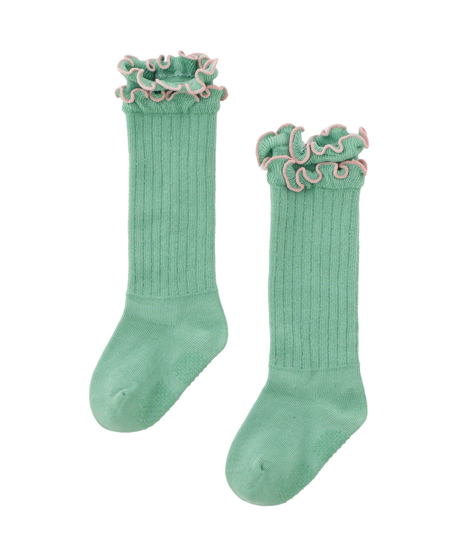 ●履き口のフリルがポイントの、可愛らしいハイソックスです。