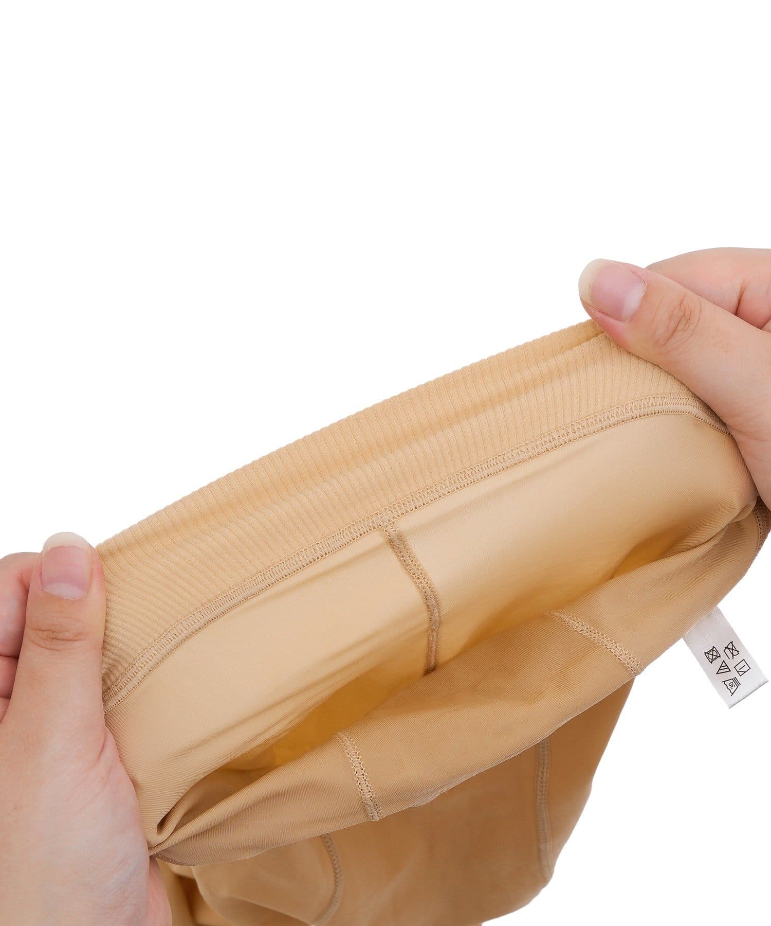 ●着用の際はストッキングを履くように、タイツを手繰り寄せて、つま先から少しずつ引き上げて履いてください。