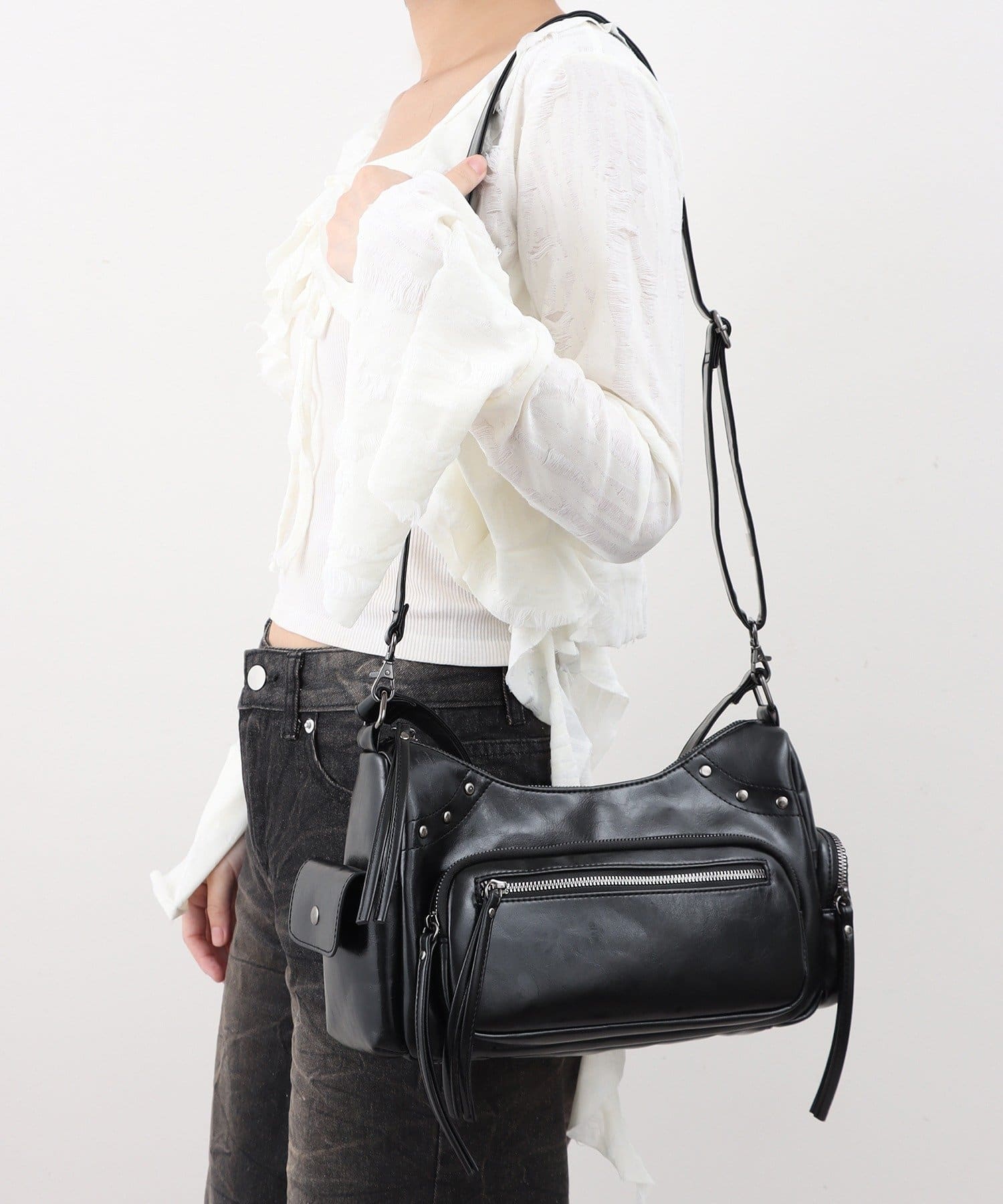 ●長さの違うショルダーベルト付きで、ワンショルダーと斜めがけの2WAY仕様。