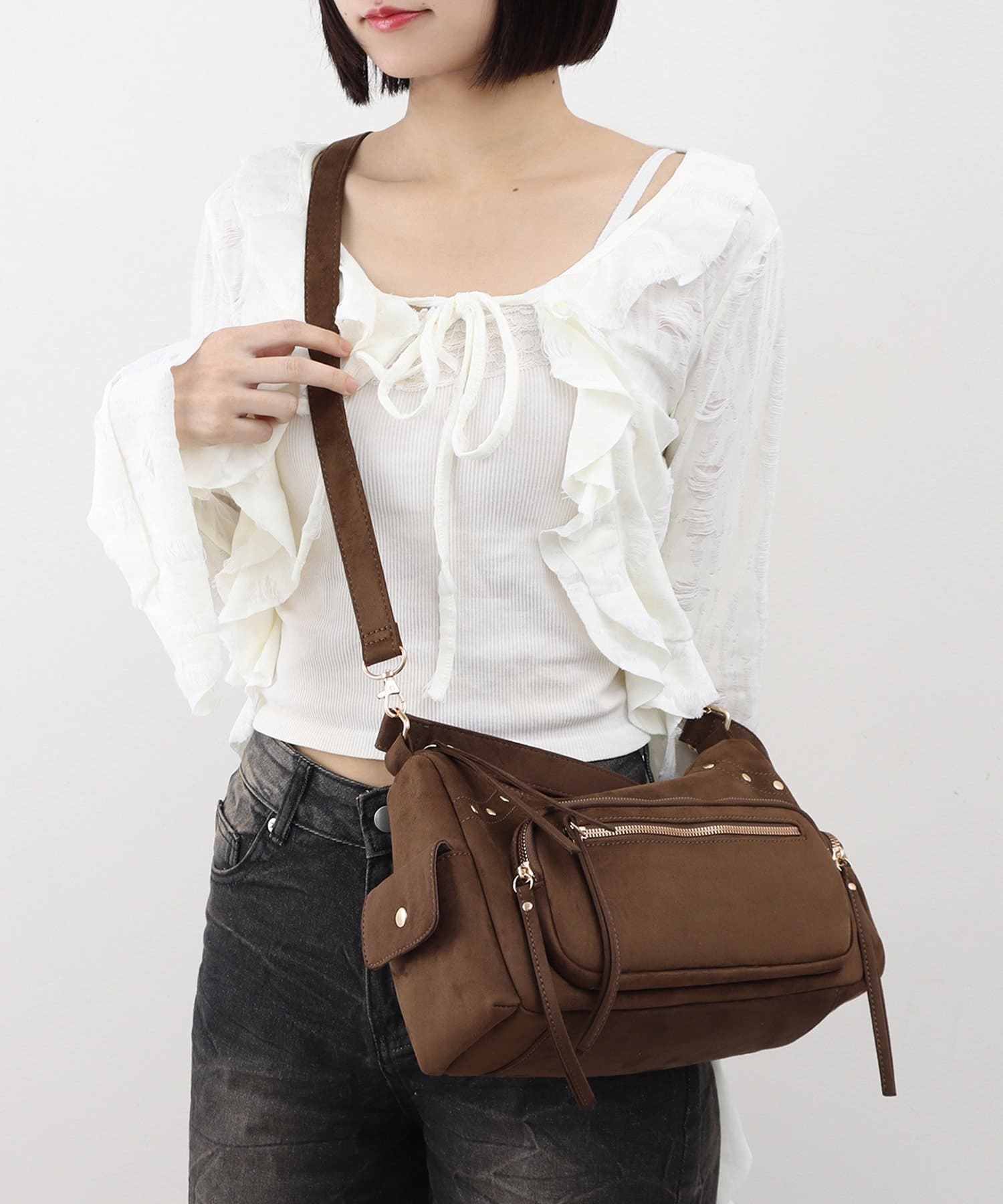 購入場所:店舗これは絶対欲しいと思って買いに行きました!他の色も可愛いけどスエードっぽいバッグを探していたのでブラウンにしました。ポケットがいっぱいあっていっぱい収納出来ます。自分は肩掛けメインで使うと思うけど斜めがけのショルダーもついてるというのが素晴らしい配慮ですね。この値段ではだいぶお得だと思います。