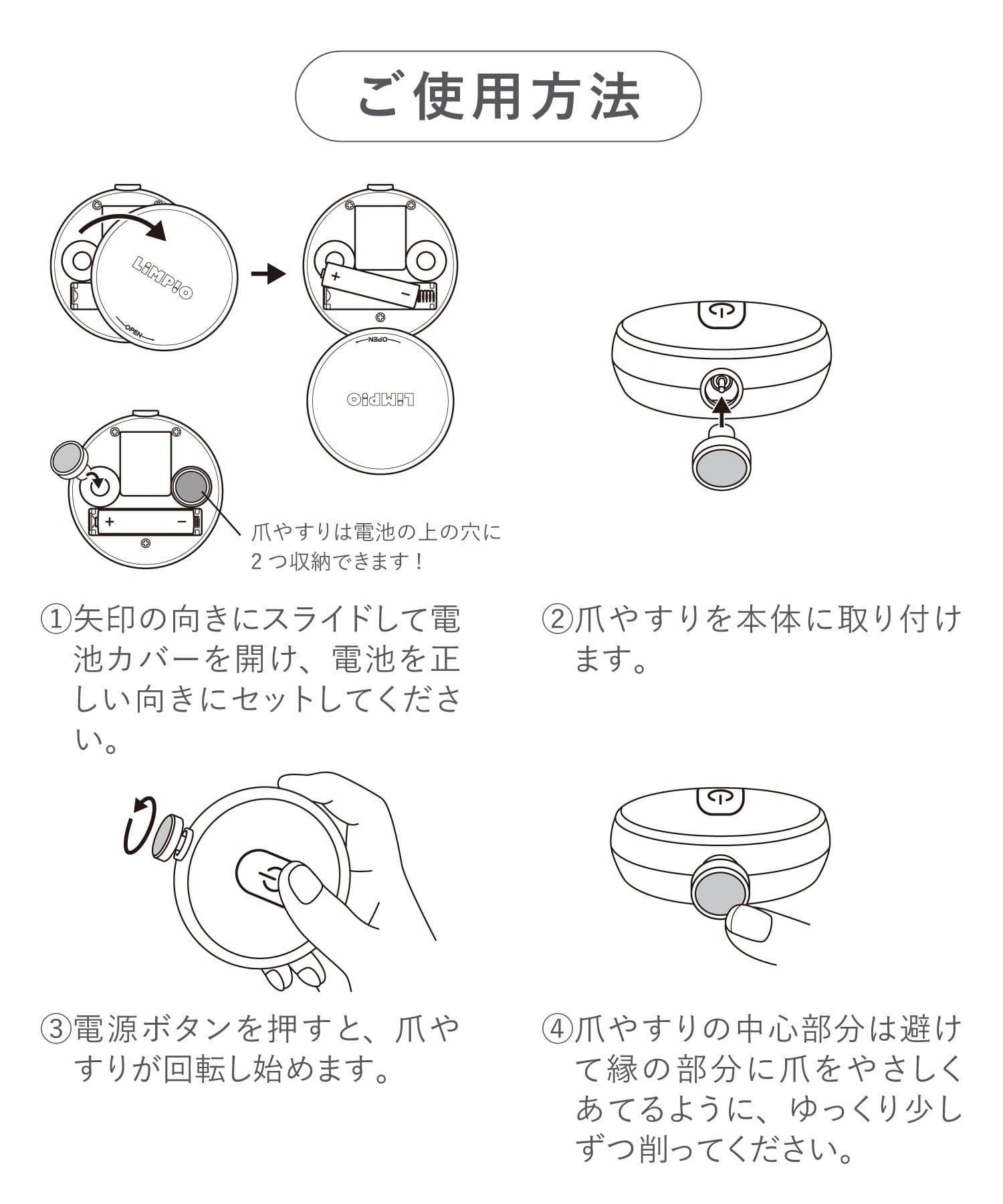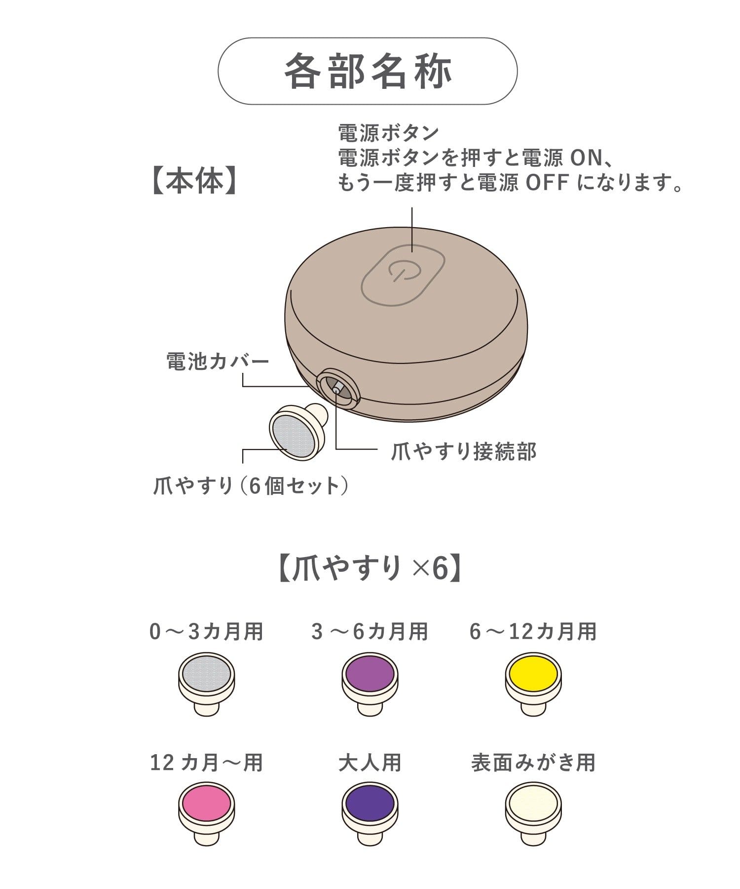 ●6種類の爪やすりが付属しており、赤ちゃんから大人の爪まで幅広く対応しております。