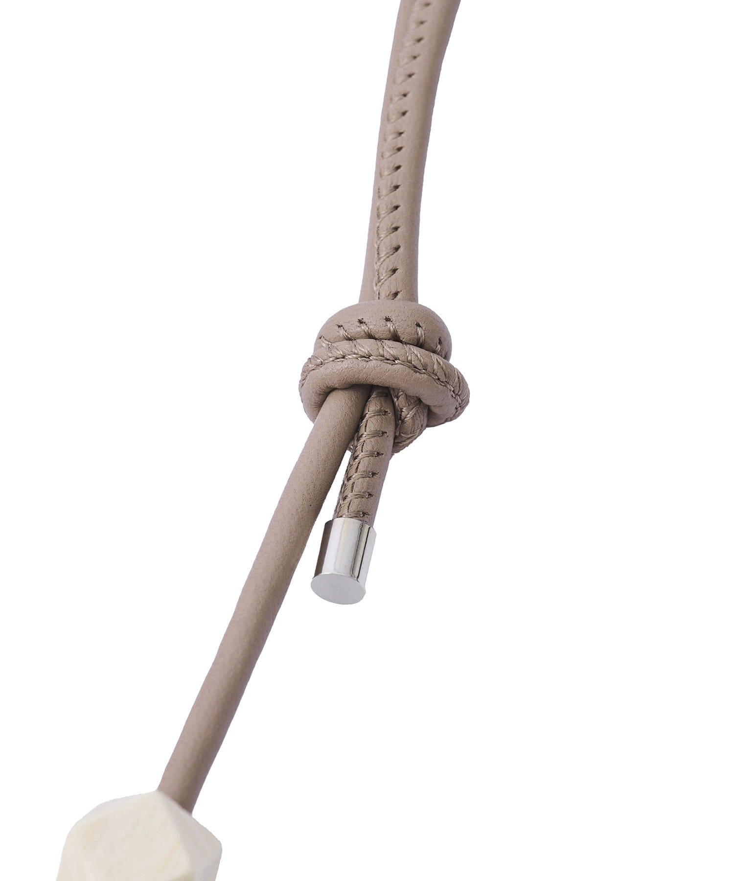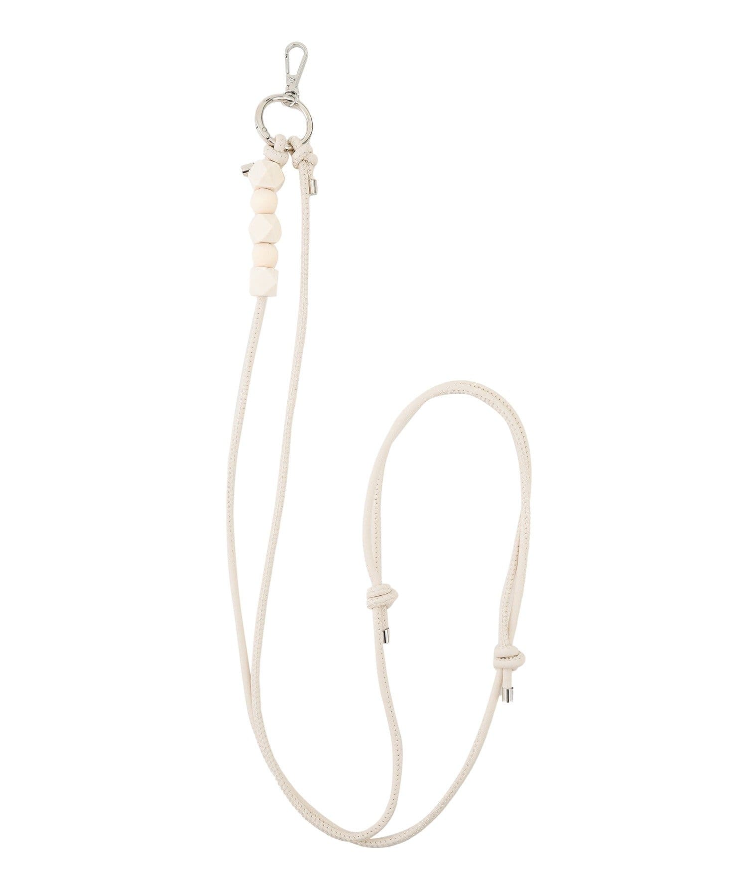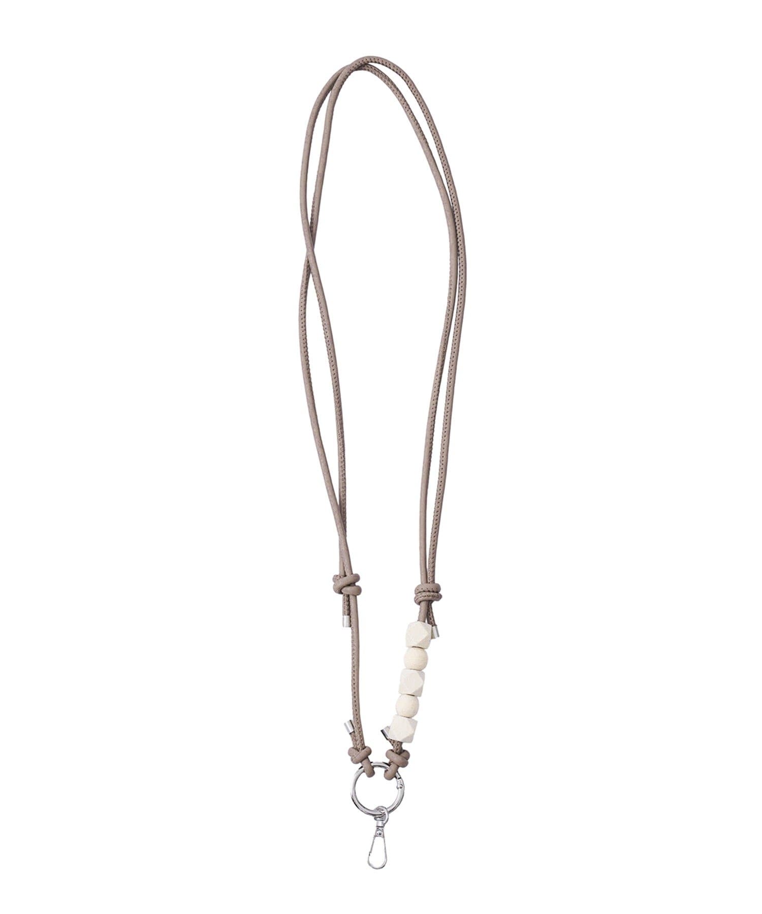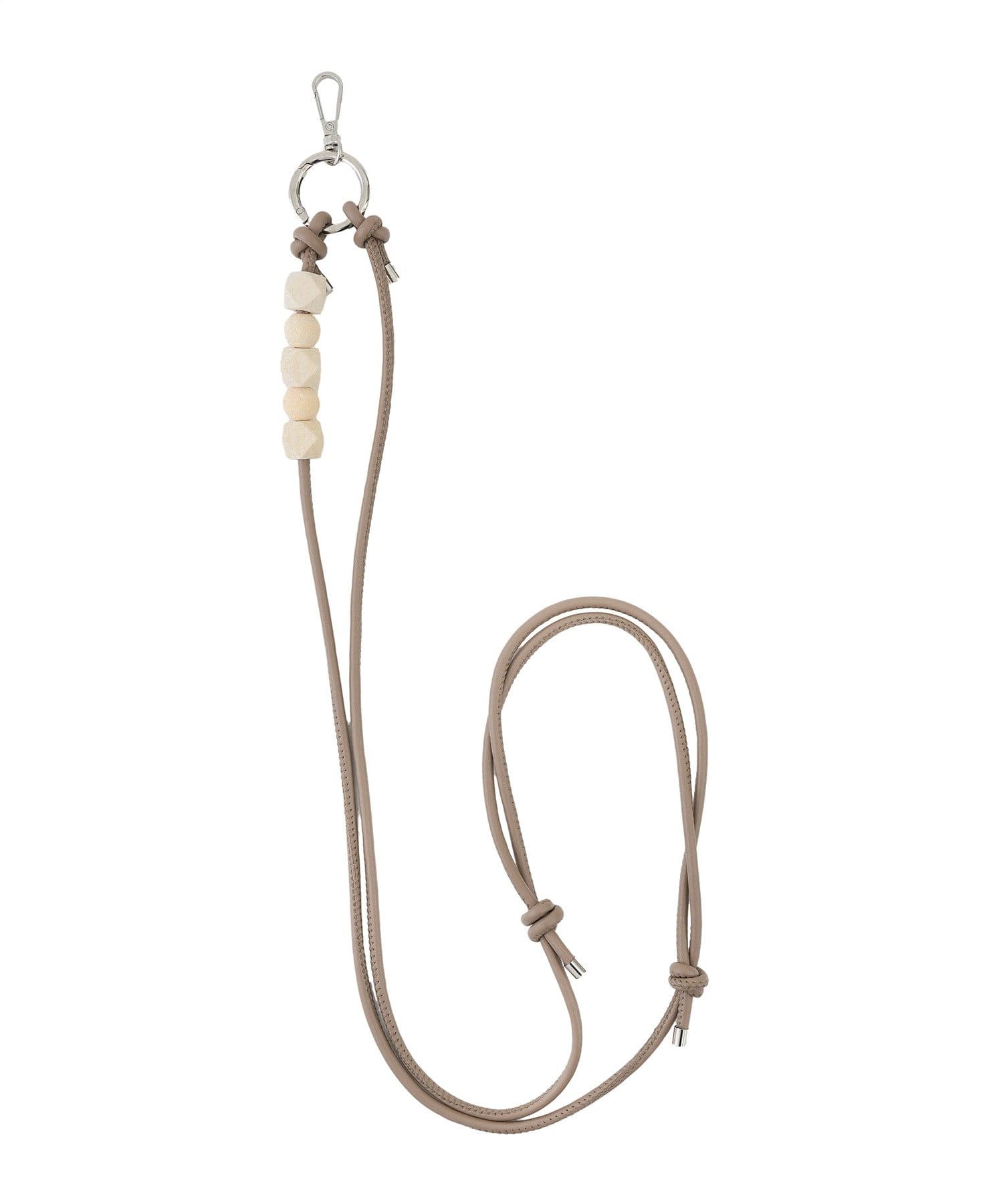 ●フェイクレザー×木製ビーズの組み合わせが魅力のナチュラルテイストなスマホショルダー。