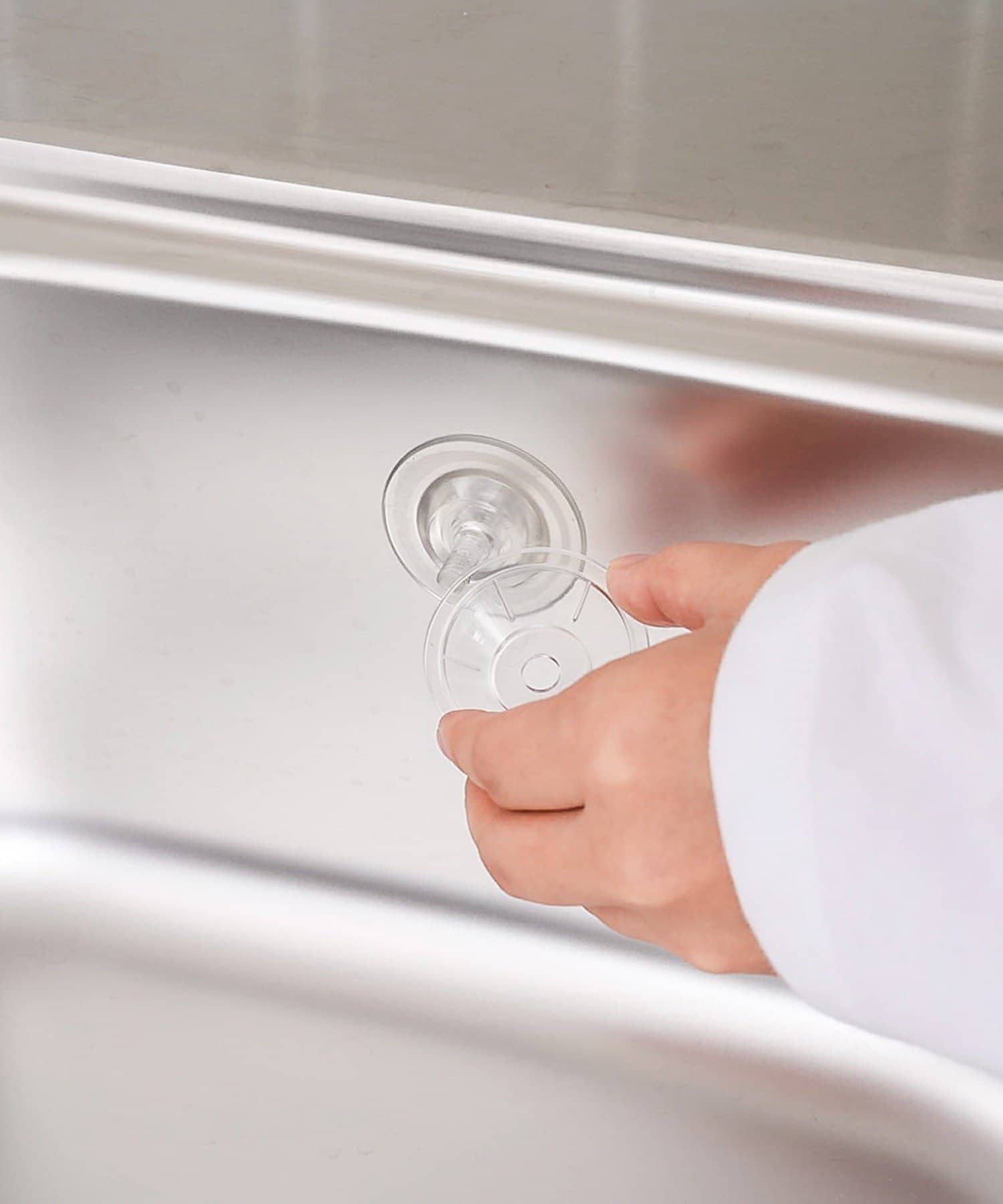 ●ネジ式の吸盤でしっかりとシンクに吸着させて設置できます。