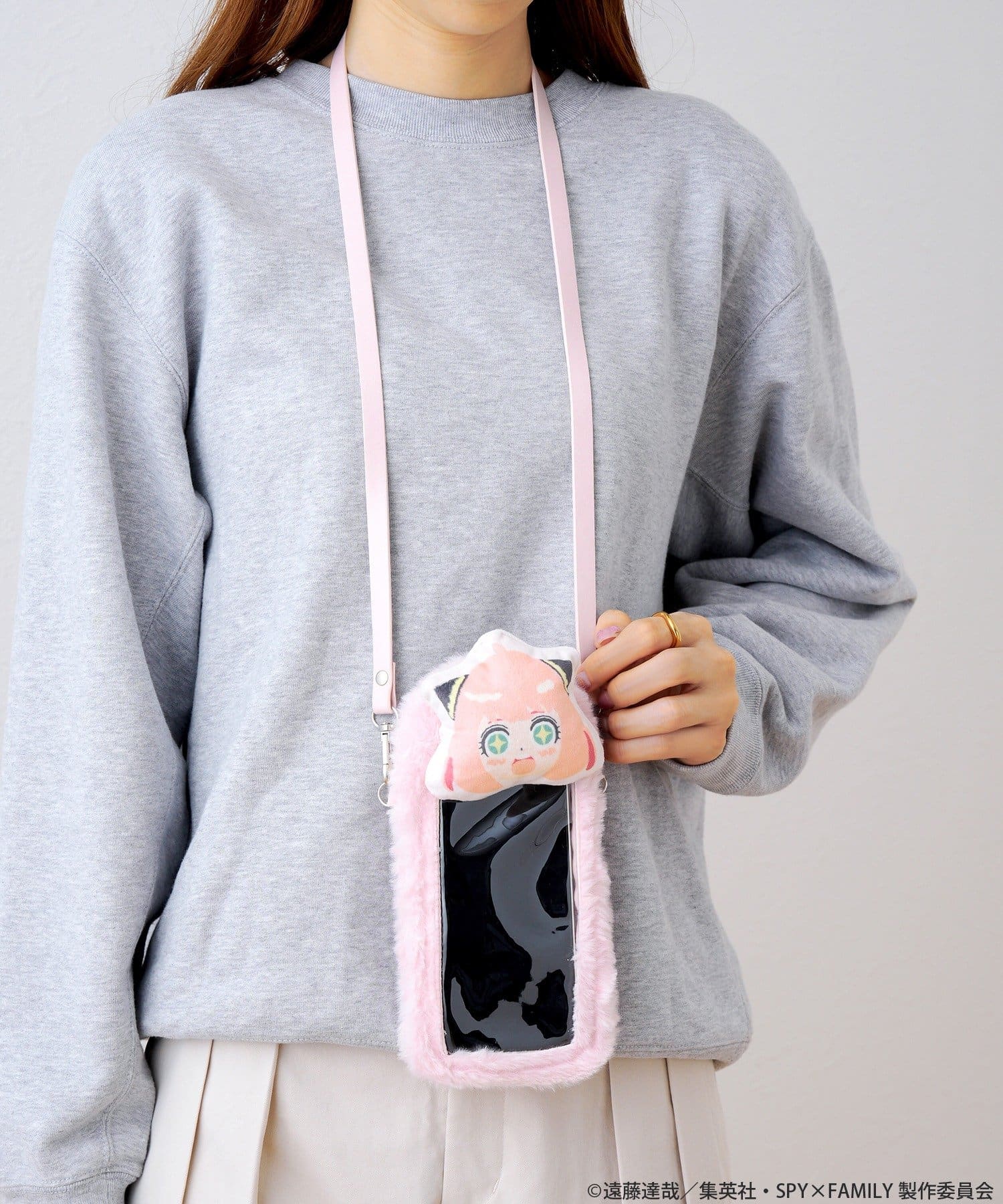 ●「アーニャ・フォージャー」のキュートな表情を楽しめる可愛いマスコット付きのスマホポーチです。